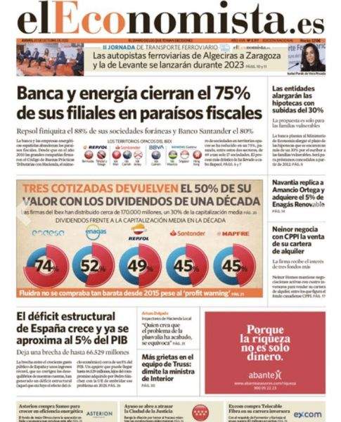 La banca y las empresas energéticas españolas abandonan los paraísos fiscales. Desde que en el año 2010 las grandes empresas firmaron el Código de Buenas Prácticas Tributarias con Hacienda, el número de sociedades en territorios opacos se ha reducido en un 75%, pasando, entre estos dos sectores, de 69 a tan solo 17 sociedades. Las que se mantienen lo hacen ahora solo por razones puramente operativas o están inactivas o en proceso de liquidación.