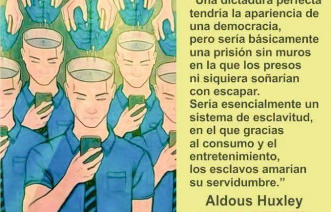 Lo más paradójico de todo es que Aldous Leonard Huxley en su libro "Brave New Worid", 1932, ya lo anticipaba. Decía Huxley que "viviríamos esclavizados por la burocracia, la televisión y la tecnología". "Que la publicidad esquivaría los filtros racionales y capturaría la mente de los niños". "Que se establecería una dictadura basada en el terror". "Que la revolución farmacológica nos haría amar la esclavitud". "Que los candidatos políticos serían mercancía publicitada por profesionales". Y "que las personas malignas se aprovecharían de la tecnología y el gobierno para obetenr el poder". ¿En qué se equivocó? Seguramente Huxley también "sabia massa".