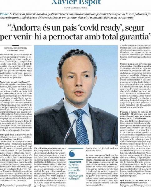 El día ¡¡10 de octubre de 2020!! escribí un artículo, desde esta misma tribuna, titulado. "No es tolerable que un día se diga una cosa, mañana la opuesta y luego todo lo contrario", en el que otras cosas decía, y cito textualmente, lo siguiente: "Mientras hace apenas unos meses..., unos se dedicaban a "vocear" sus supuestos logros, con declaraciones tipo: «Visitar Andorra es seguro, somos 'covid ready'», vean link aquí, o pagando publirreportajes tipo: "Andorra supera la crisis de la covid-19 y logra una situación de máxima seguridad", vean link aquí, o "Animo a los españoles a planificar sus vacaciones", vean link aquí, o «Hoy tenemos bajo control la pandemia. Hay que salir a la calle», vean link aquí. (Fin de la cita).