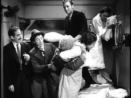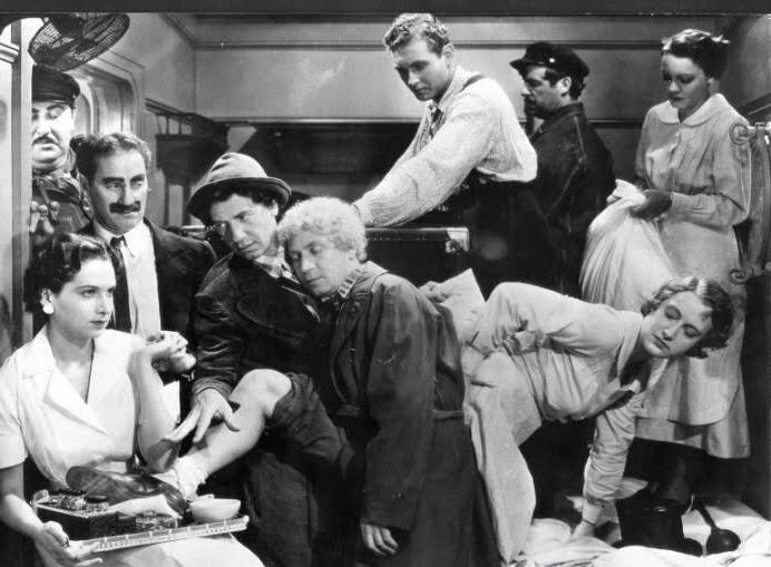 La famosísima – histórica, para el cine – escena del camarote en Una noche en la ópera es el ejemplo perfecto de algarabía en un espacio reducido: en una conejera que no supera los dos metros cuadrados – y en la que ya están amontonados los Hermanos Marx y su voluminoso equipaje – comienzan a aparecer un fontanero con enorme llave inglesa; unas camareras que pretenden poner en orden el cubículo; una manicura a la que, como es natural, Groucho intenta seducir; y los camareros con enormes bandejas. Aparentemente, allí cada cual está haciendo algo: fontanería, manicura, servir comida, limpiar, dormir. Pero, en realidad, nadie hace nada más que incordiar a los demás. En ése lugar dónde Groucho planea su íntima cita amorosa, y acaba por convertirse en el rincón más poblado del planeta, se contienen algunas de las esencias de ese “más difícil todavía” que convierte a una buena comedia en mejor. Para acabar, ya abarrotado el camarote de polizones, fontaneros, camareros, masajista, aparece una manicura que pregunta a Groucho: “¿Cómo desea las uñas, cortas o largas?”, y él responde: “Cortas, cada vez queda menos sitio por aquí”.