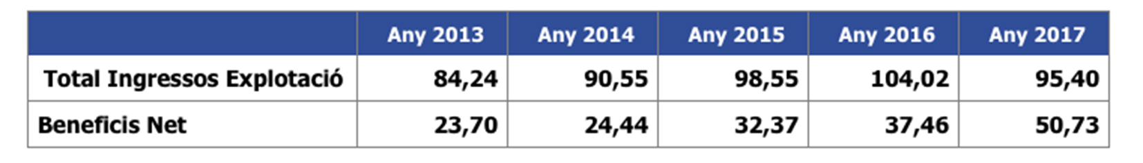 Els comptes (els del 2018 encara no són públics) d’Andorra Telecom, en milions d’euros, són: