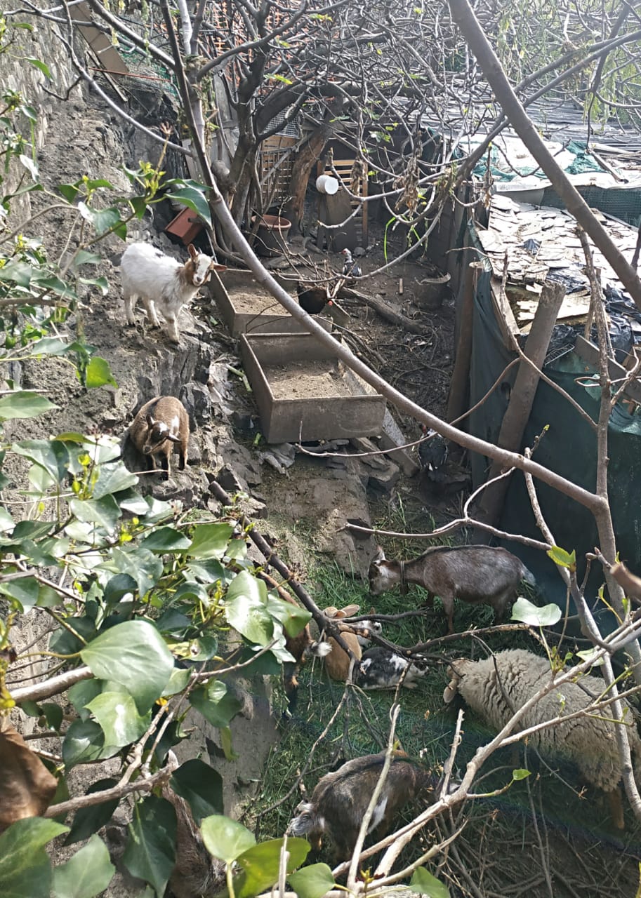 Pel que fa els animals de renda, tal com podeu observar en les fotografies, i pel testimoniatge de diverses persones que durant aquests dies de confinament han passejat les seves mascotes en aquest indret, s’ha pogut constatar que aquests animals han estat en aquest terreny, sense cap mena de protecció alguns d’ells, i d’altres amb escasses proteccions, quedant-se a la intempèrie com en el cas dels animals fotografiats en la número 8, tant quan ha plogut i nevat darrerament. Pel que fa els animals de les fotografies, no tenien aigua ni menjar, les gallines estaven per sobre dels arbres, i hi havia tot tipus d’animal de granja aglutinats en unes instal·lacions mig trencades, podrides, i en un terra ple de fang, i fins i tot algunes persones varen veure a alguns d’ells menjant l’escorça dels arbres per la fam que devien passar.