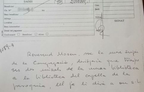 "Reverendo Mosén, soy la madre superiora de la Congregación, desearía que traspasases dos misales de mi biblioteca a la biblioteca del capellán de la parroquia, él ya le dirá dónde se han de colocar". De esta manera tan "religiosa" se dirigía la matriarca de la familia Pujol a su gestor de cuentas de Banca Reig.