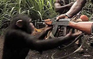 Observen la que puede liar un mono con una AK 47. ¡Darle una metralleta a un mono siempre ha sido, es y será muy peligroso!