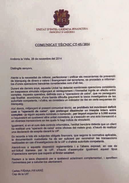 No entiendo por qué en el banquillo no hay sentado ningún alto directivo, comercial y trabajador de las otras entidades financieras que también hicieron compensaciones de caja, cosa que por otro lado JAMÁS han estado prohibidas tal y como reconoció el "ocultista" director de la UIFAND en su "COMUNICAT TÈCNIC CT-05/2014", de fecha 28 de noviembre de 2014.