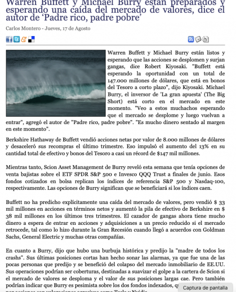 Las noticias, muy desagradables para unos muchísimos y enormes oportunidades para unos poquísimos, son las que son, y no seré yo el que añada o quite nada de lo que dicen, e indican. El que quiera ponerse las pilas, que se las ponga, todavía están a tiempo, y el que no, siempre le quedará el triste y penoso consuelo de quejarse en la más absoluta “intimidad”, para que los que forman parte de lo que algunos vienen denominando “la tribu” no les señalen. Los tiempos cambian, y cada vez lo hacen más rápido. Lo que hace nada era la "repera limonera", ahora es "nada". Estar al tanto de lo trascendental, en vez de ocuparse de lo intrascendental, es altamente aconsejable, pero cada uno de ustedes es muy libre de elegir en qué quieren tener ocupadas sus cabezas.