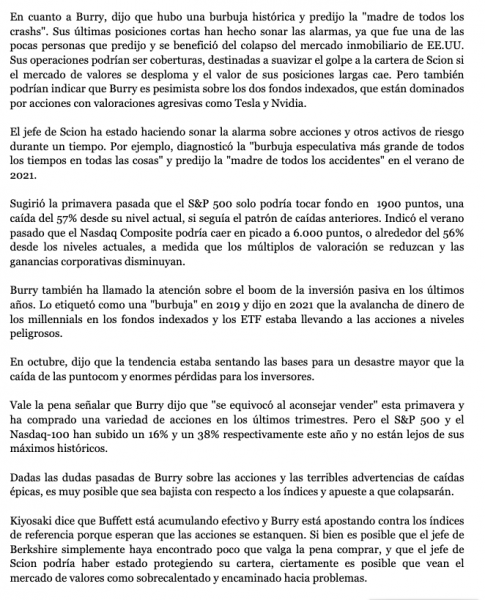 Pero claro, siempre hay un pero, hay que tener “muchísimo cuajo” para seguir tragándose la terrible cantidad de memeces que un día tras otro nos quieren endosar por la vía que sea, y eso que tenemos varias, y algunas más dolorosas que otras. Que a estas alturas del siglo XXI los que se han apoderado del poder sean incapaces de saber cuántos pisos vacíos hay en el país, unos hablaban de 6.000, otros hablan de 3.000, es solo un 50% de diferencia, lo que indica que ni saben de lo que dicen, y se quedan tan anchos, no puede dejar tranquilos ni a los que ni piensan. Que todo un fiscal general, tras doce años en el cargo, acceda por arte de magia a formar parte de un tribunal, y tanto me da el que sea, es más que preocupante, incluso para los que ni piensan. Que día sí y día también se sigan otorgando más y más, y más, “puestos de confianza”, por descontado a dedo, sin tener la menor idea de lo que “ya” está pasando en el mundo, me comentan que hasta algún youtuber ya habla de ello, y por lo que me llega a los oídos está del todo equivocado al comparar la crisis del 2007/2008 con la de ahora, ya que la 2007/2008 fue un juego de niños en comparación con la de ahora, alguien que sabe mucho más que ustedes y que yo no ha dudado en calificarla como “la madre de todos los crashs”, “la burbuja especulativa más grande de todos los tiempos en todas las cosas” y “la madre de todos los accidentes”, es para echarse a temblar, incluso para los que ni piensan. Que uno de los más grandes inversores de todos los tiempos haya vendido 33.000.000.000 de dólares en acciones y haya aumentado su liquidez en más de 38.000.000.000 de dólares en los últimos tres trimestres, quiere decir algo. Que otro gran inversor diga que el suelo del SP500 está en los 1.900, una bajada de casi el 60% desde su nivel actual, y que el Nasdaq Composite podría caer en picado a 6.000 puntos, casi otro 60% desde su nivel actual, y se haya puesto corto, es que huele la sangre.