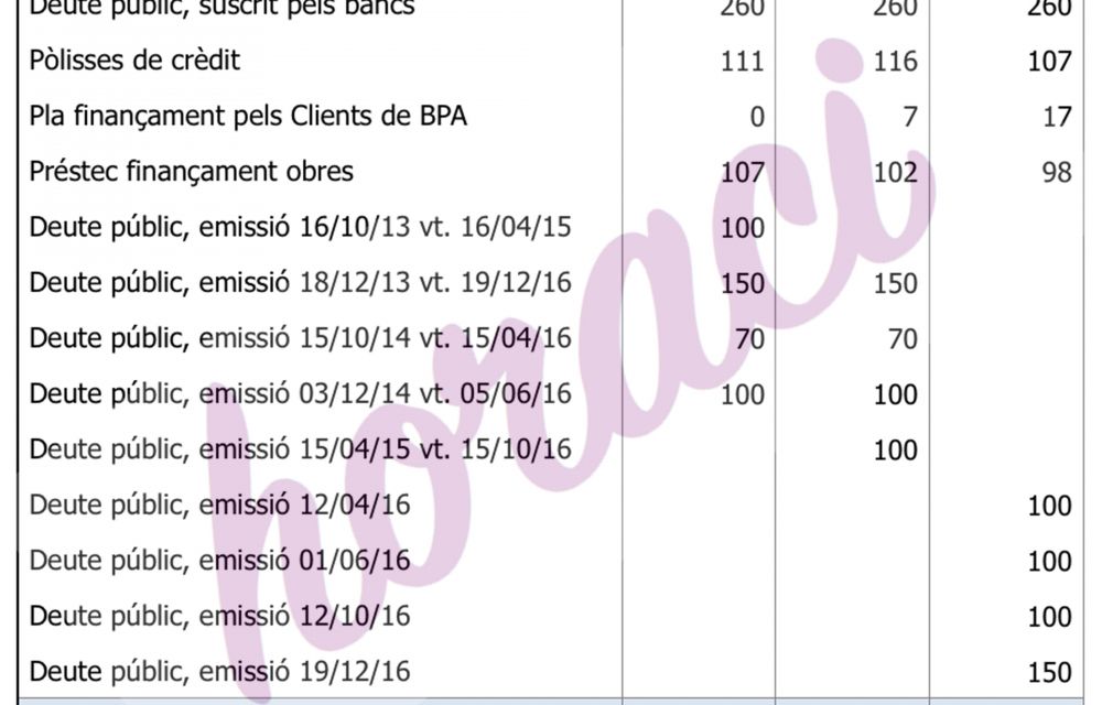 El primer que sobta és que aquest fantàstic superàvit no hagi servit per reduir el deute, si no que l’ha incrementat en 26 milions d’euros i queda estructurat com segueix: