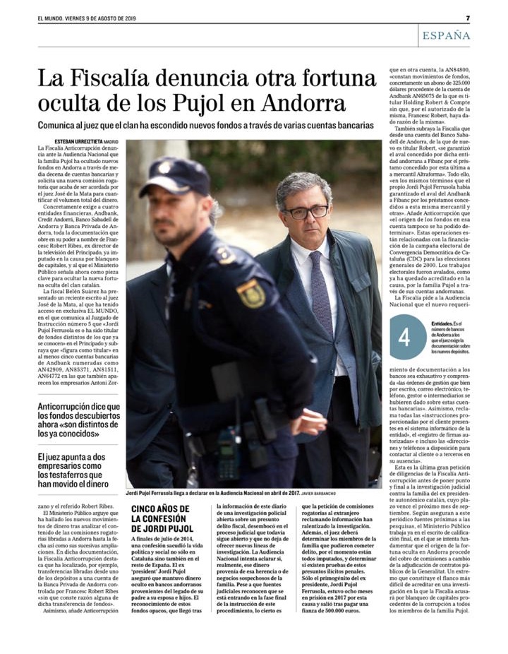 - Las Provincias: "La Fiscalía cree haber descubierto una nueva fortuna del clan Pujol en Andorra". (Vean link aquí).