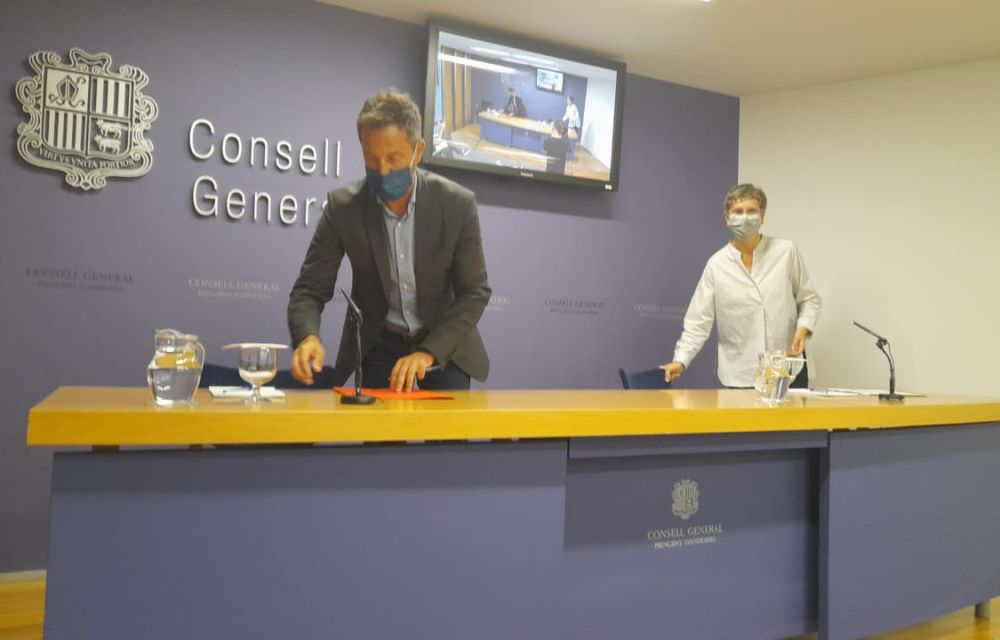El president del grup parlamentari socialdemòcrata, Pere López, i la consellera general, Susanna Vela, han comparegut aquest dimarts en roda de premsa per avançar les dues propostes d’acord que presentaran el proper divendres durant el debat d’orientació política que començarà aquest dimecres: la demanda al Govern d’una llei d’infermeria i la realització d’un pla nacional de mobilitat.