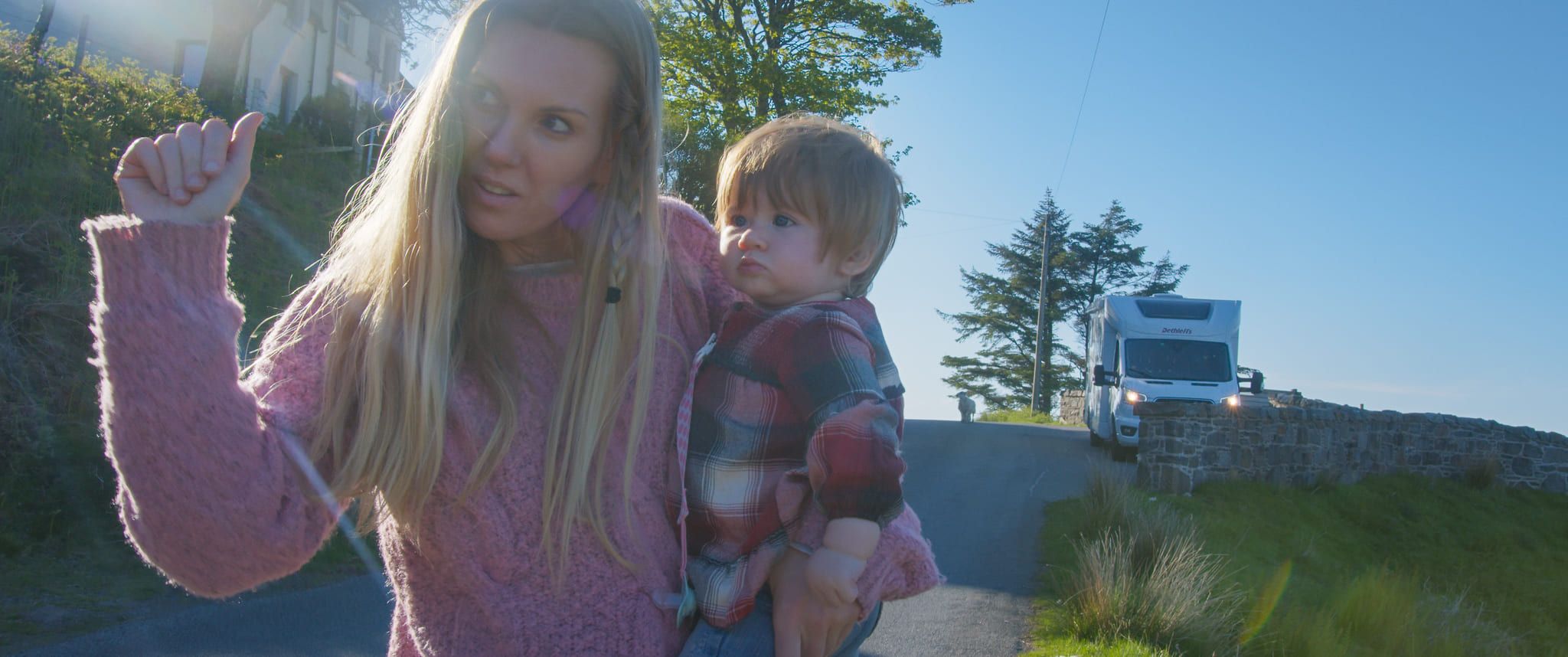 L’interior de l’autocaravana es convertia en escenari, en casa i en plató mòbil. A l’exterior, els paisatges eren els decorats: muntanyes, platges, carreteres secundàries i llacs escocesos. “Hi havia una ruta planificada, però ens donàvem llibertat per modificar el que calgués. Si a les cinc del matí hi havia una llum increïble, el José sortia a rodar”, explica l’actriu. Però ei! Durant aquest projecte no van estar del tot sols, sinó que en el film apareixen també els actors Albert Ammann, Elisabeth Larena, i els actors britànics Tom Medcalf i Jennifer Carss, que es desplaçaven als punts claus del recorregut per gravar les seves escenes.