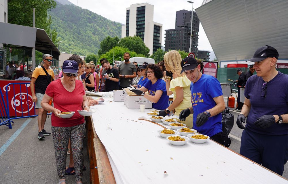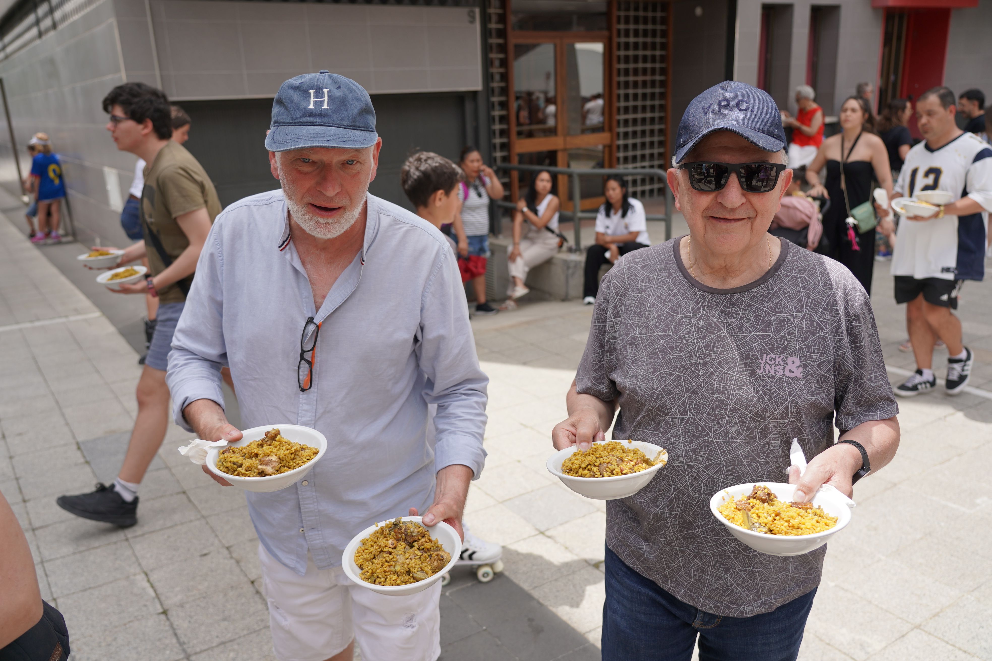 I és que calia fer espai per a l’arròs. Des de força estona abans, i mentre al costat de Caldea les paelles ja feien feina, el parc de la Mola estava ple de gent. La calor. Intensa, no els ha espantat. Els més petits han aprofitat per remullar-se a les fonts. I els grans feien l’aperitiu. A dos quarts de dues en punt, ha començat a repartir-se les 1.200 racions -alguna de les quals, per cert, per algun aficionat de la Ponferradina en la prèvia al duel que disputaven a la tarda amb l’FC Andorra. Èxit total si es fa cas de les dues llargues cues que s’han format.