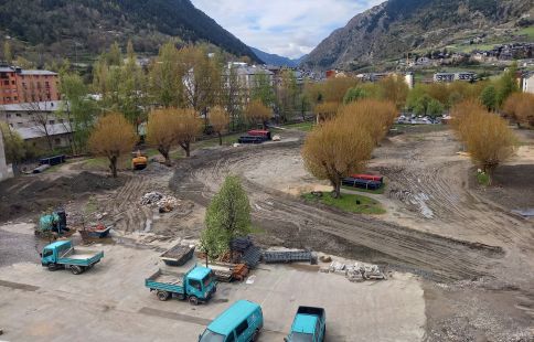I, justament, entre aquests dos punts, és on el pla d’urbanisme de la parròquia marca que ha d’anar el nou carrer que dividirà la parcel·la. La seva forma ja es pot intuir després dels treballs realitzats per l’empresa responsable de les obres. Encara, però, falta saber quina serà la seva direcció i com s’acabarà ordenant el trànsit a la zona un cop estigui finalitzat tota l’actuació.