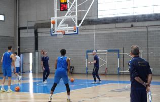 Els jugadors del MoraBanc, treballant el tir a la part final de l'entrenament.