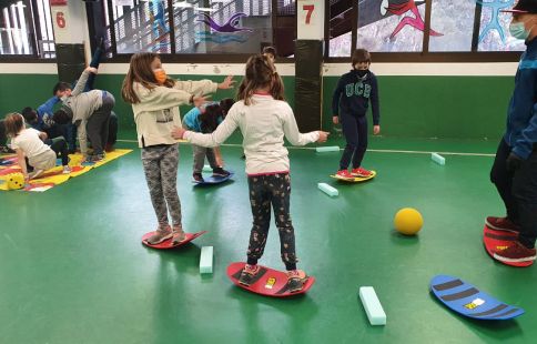 Els infants han realitzat un circuit de quatre exercicis relacionats amb l’equilibri necessari per surfejar a la neu, els moviments bàsics o les diferents posicions que s’utilitzen per evitar lesions.
