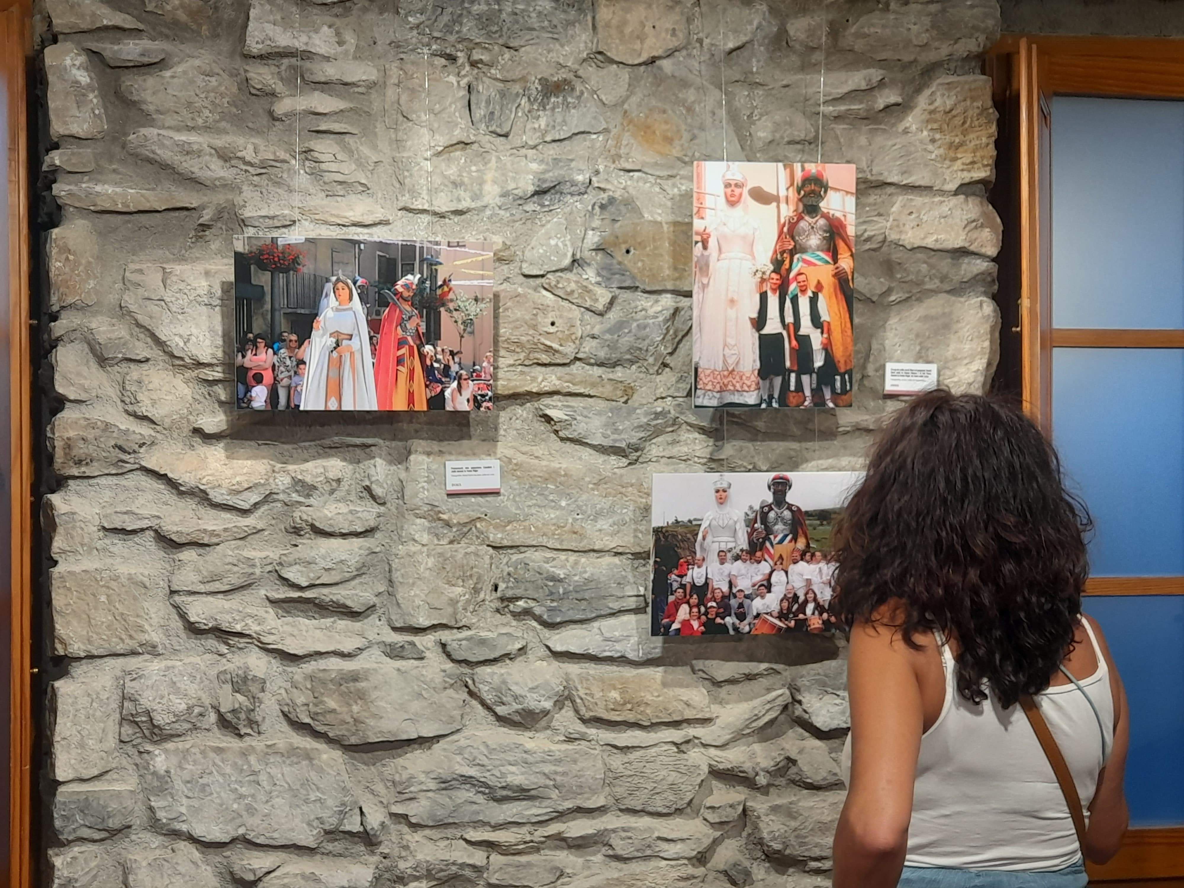 Una persona mirant l'exposició dels 40 anys de la Colla Gegantera de Sant Julià.