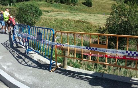 En qüestió de pocs segons la barana va cedir i una de les dones, de 43 anys, va caure d’una altura de cinc metres. El cop contra el terra va ser sec i eixordador. Tan o més que els crits que va deixar anar. Només els xiscles de la seva filla van superar-los. De seguida es va mobilitzar gent de l’entorn. Inclòs un metge i una psicòloga, pare i filla, que feien també estada a la zona. L’home va poder baixar fins al lloc on hi havia l’accidentada i va poder constatar que, d’entrada, la dona mantenia les constants vitals. La dona, la psicòloga, es va fer càrrec de la filla menor de l’accidentada.