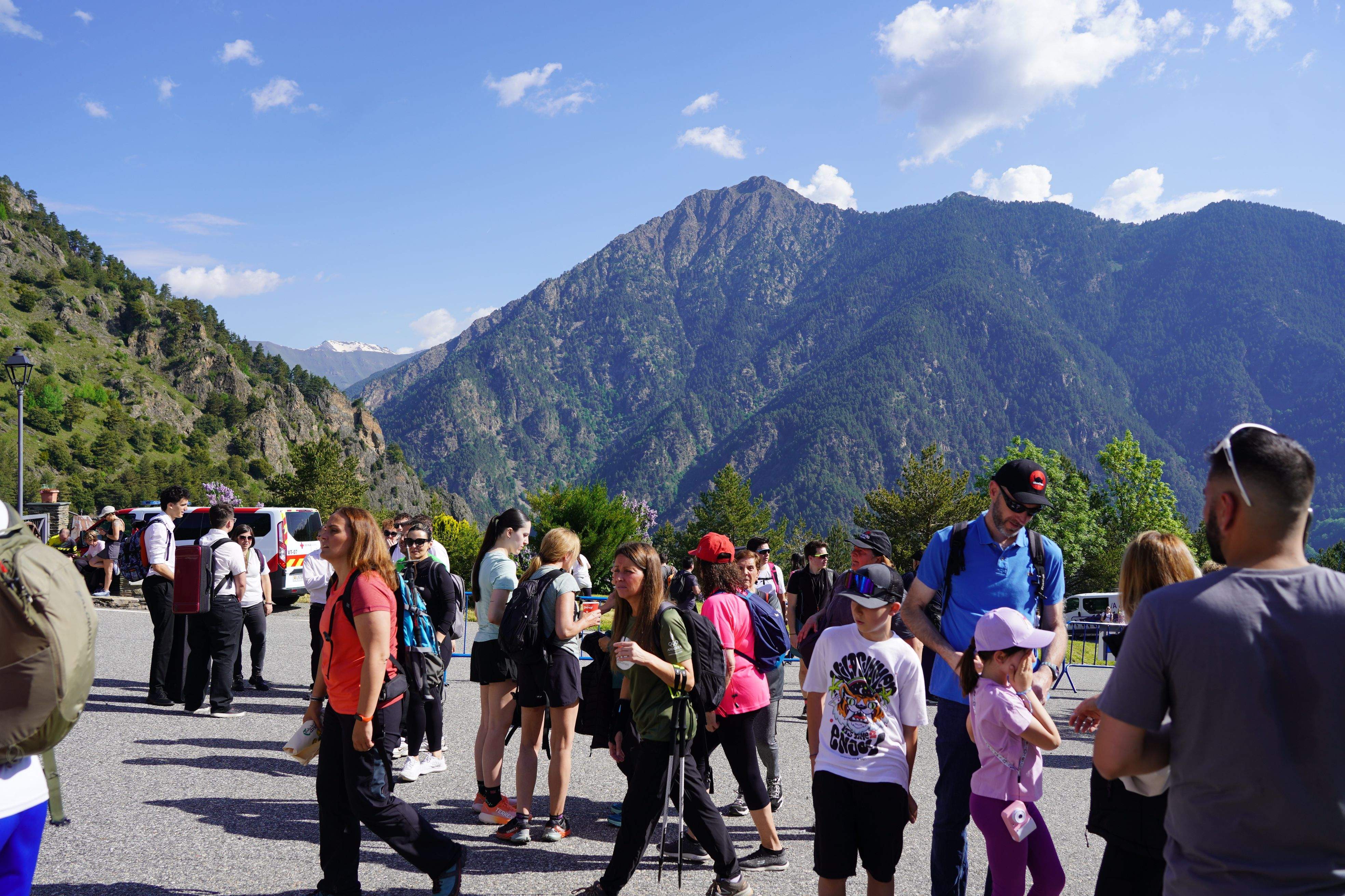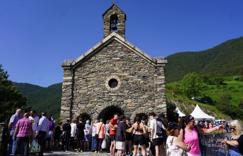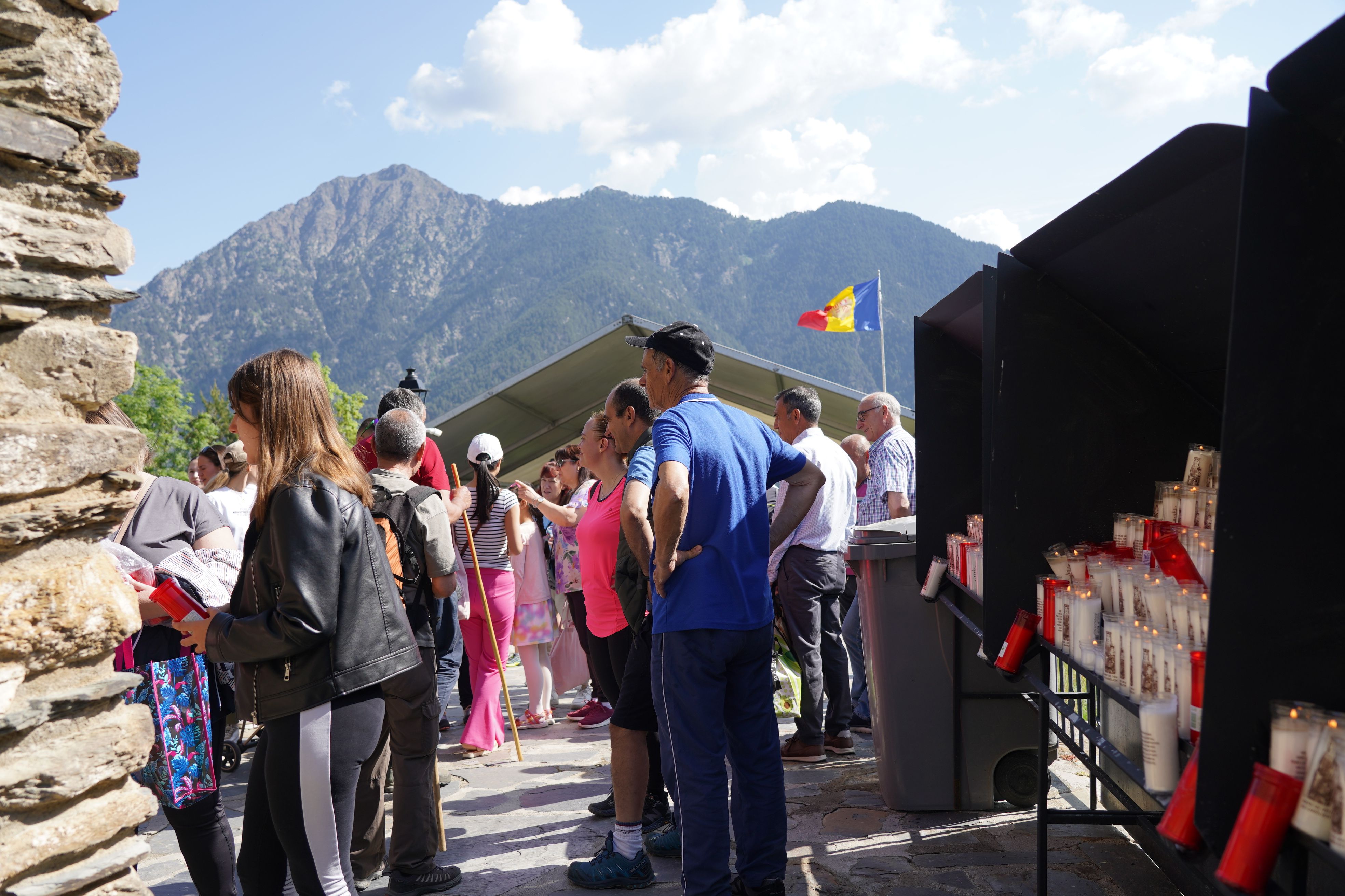 Alguns hi han arribat caminant, altres amb cotxe. Alguns anaven a buscar el tradicional pa, els altres anaven a la missa de les 10 hores. El que sí que queda clar és que al llarg del matí al Santuari no hi ha parat d’arribar pelegrins, devots, turistes o simples curiosos i amants de les tradicions. Vora les 9 hores, una servidora pujava cap al Santuari amb el cotxe per poder cobrir l’acte, pel camí -més enllà de les cues a Santa Coloma, si es venia de la capital- es podia observar desenes i desenes de persones que feien la ruta caminant acompanyades de les seves famílies, animals de companyia o soles. A les mans, ampolles d’aigua, i cada un parell de corbes s’observaven grups aturats que descansaven, i es replicaven la crema solar. Perquè si una cosa ha quedat clara del Canòlich d’enguany és que la calor ha acompanyat la jornada.