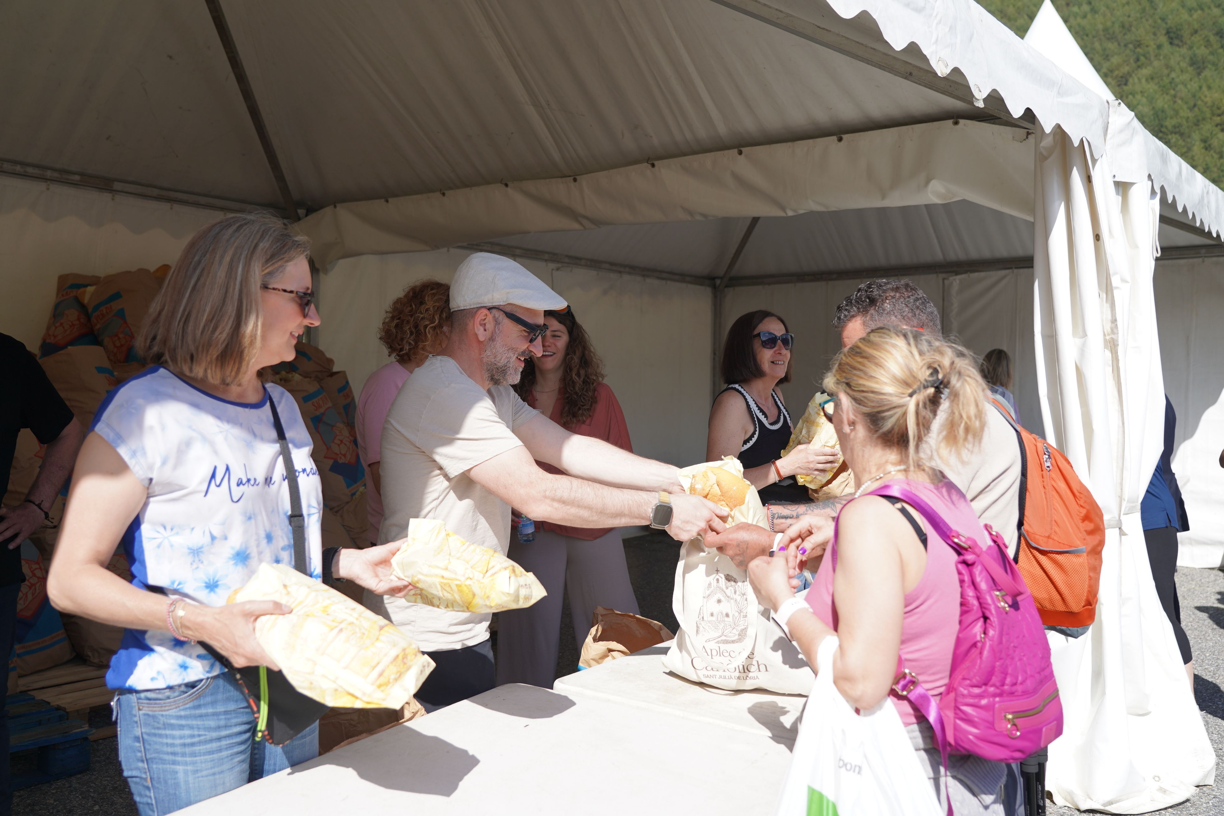 El cònsol major, Cerni Cairat, i la consellera general Maria Àngels Aché, repartint pans.