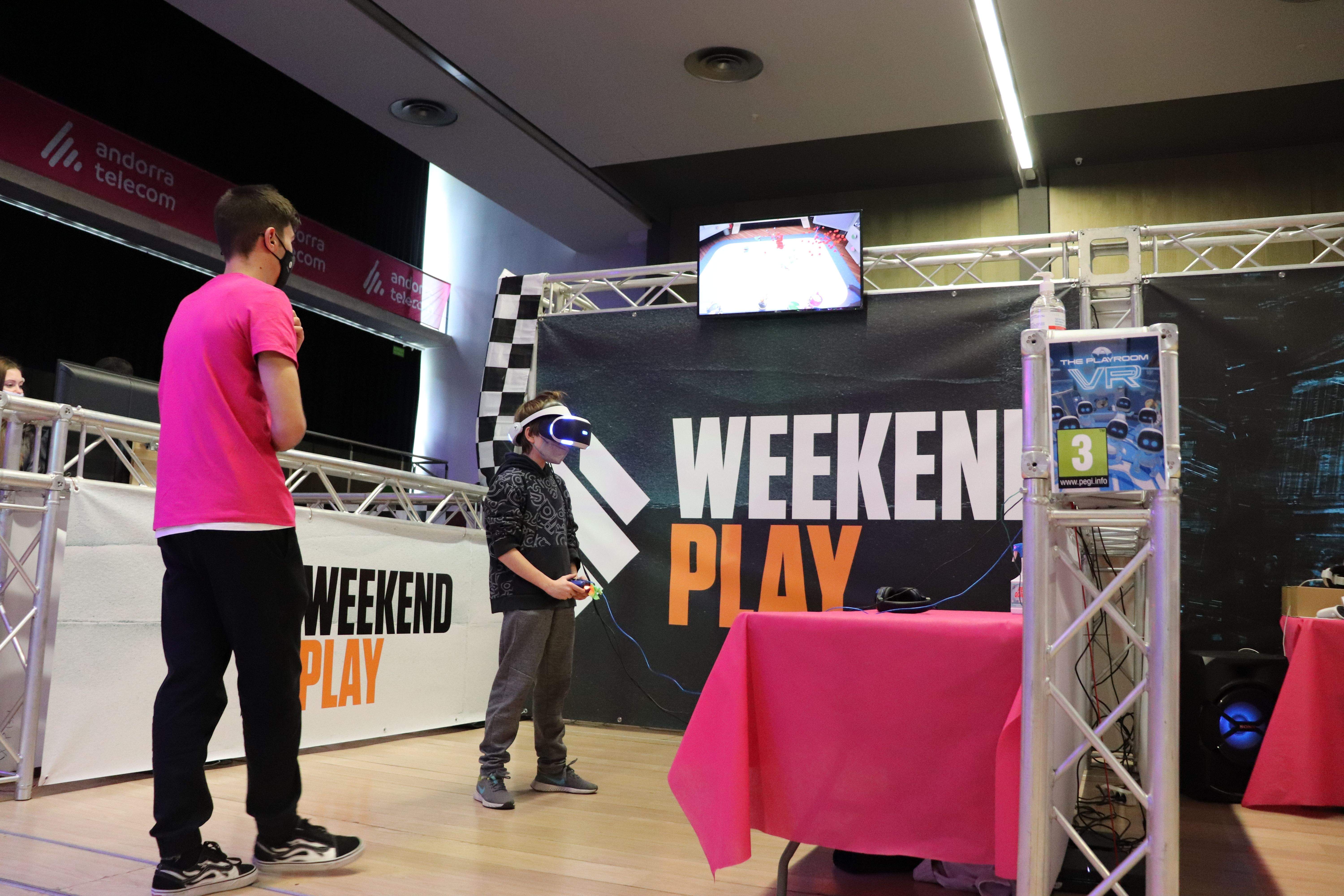 Abans d’obrir ja hi havia algun que altre aficionat als videojocs esperant a la porta. En quant s’ha pogut passar, el Prat del Roure ha començat a rebre un degoteig, sobretot de nens, aprofitant que no tenien escola. No ha sigut un començament explosiu, però encara queda tot un cap de setmana per davant perquè els joves puguin gaudir de totes les possibilitats que s’ofereixen. I són moltes. Des de clàssics, com l’Arcade, passant per jocs en línia, diverses videoconsoles i realitat virtual. El director d’Andorra Telecom, Jordi Nadal, ha volgut destacar que s’ha pogut instal·lar el ‘Gran Turismo 7’. Aquest videojoc s’ha estrenat aquest divendres, i es podrà provar en exclusiva al saló. “És un joc molt reconegut i no és possible jugar-lo a casa