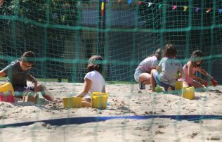 Eren poc els infants que sota l’atenta mirada d’un parell o tres d’adults construeixen els seus castells. I per molt que Andorra disti del mar, ben pocs podrien pensar que allò, aquests dies que no hi ha jugadors de vòlei, no és una platja. Pels castells de sorra i per l’afició dels practicants ho semblava i de debò.