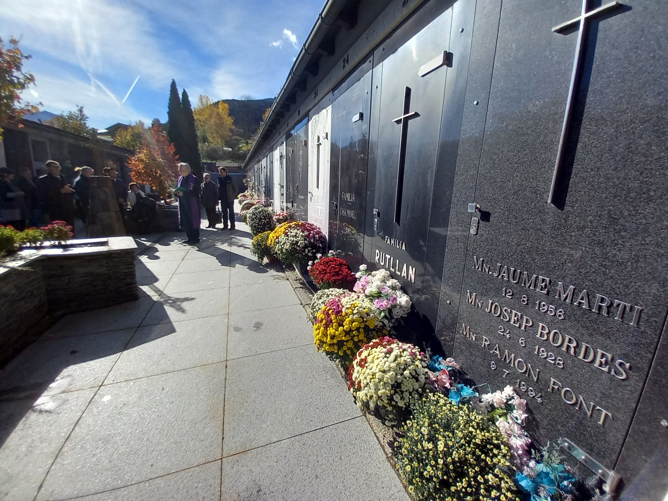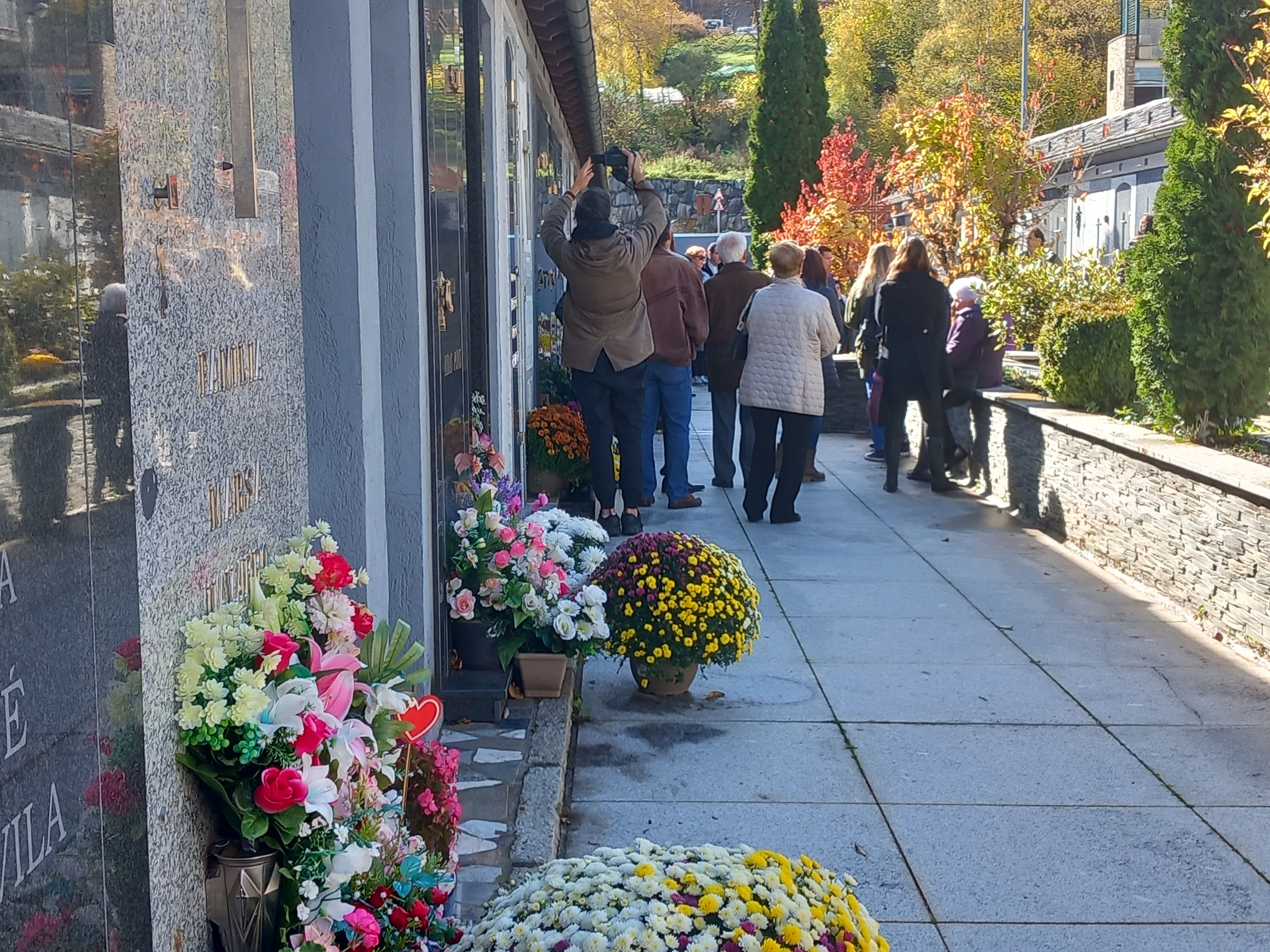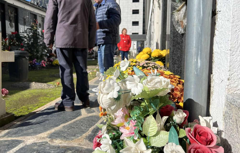 Les flors es van portar al llarg de la darrera setmana. Així ho ha confirmat una mare que, acompanyada del seu fill, acudia al cementiri del Pessebre, a Escaldes-Engordany. Ho feia pràcticament a la mateixa hora que l’any passat, i que l’anterior. “Tenim aquest costum, passem per ella i acudim aquí”, explica el fill. L’any passat ho van fer amb mascareta i sense aturar-se gaire a saludar ningú. Però el 2022 ha estat diferent, “venim més tranquils, amb més calma”, assegura la mare.