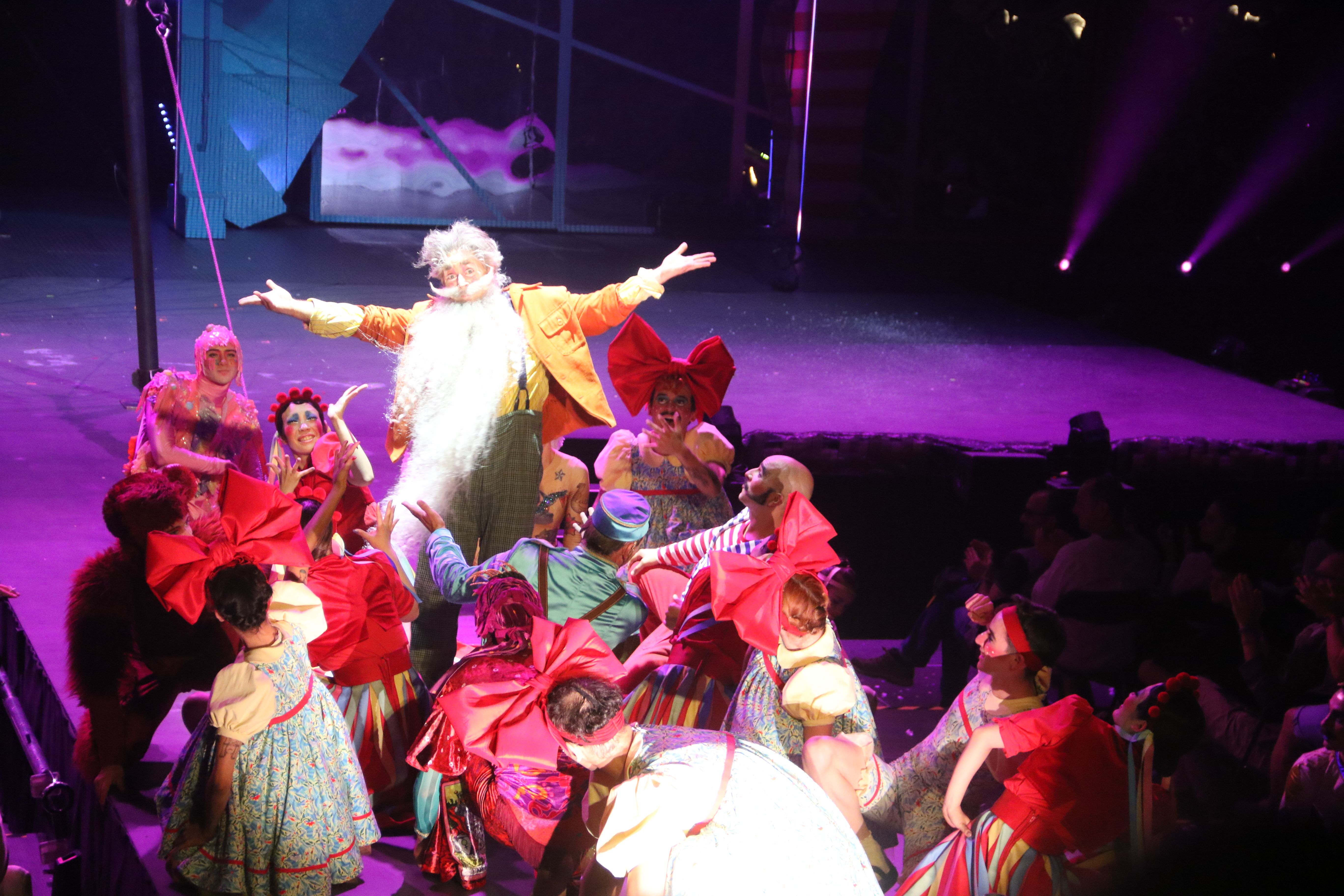 ‘Il·lu’ és més teatre que circ d’acrobàcies. Incorpora, és clar, números acrobàtics. La música té algunes fases que enganxa. Hi ha certs canvis d’escenografia. Però sense passar-se. La història, l’avi que reviu històries màgiques i se sorprèn ell mateix de com ha pogut ser d’intrèpid, els mateixos gens aventurers que ara gasten, tenen, les netes, els nets, s’explica a partir d’un sol espai. És obvi que depèn d’on tingui el seient veurà l’espectacle d’una manera o d’una altra. Però no hi ha números pensats per cada cantó com havia estat. Tampoc no hi ha aquell joc de llums i de fum espectacular d’altres ocasions.