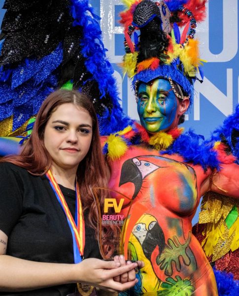Els participants tenien cinc hores per presentar el projecte, tot un repte tenint en compte les dificultats que pot tenir fer aquesta mena d’art. Per fer ‘bodypainting’ s’ha de tenir molt de pols i precisió amb el pinzell, perquè si això ja s’ha de fer normalment quan es dibuixa sobre paper, doncs imagina’t quan es fa sobre el cos humà. “L’aiguacolor és una tècnica complicadíssima perquè si et passes amb l’aigua, el color no es fixa bé. I a més, el cos no és estàtic, la model es mou, i has de tenir molta cura en cada pinzellada”, apunta l’artista, tot indicant que mai saps quins moviments farà la persona que et fa de model durant les cinc hores que durà el procés. Això sí, el que no s’esperava la resident andorrana és que uns dies abans de marxar cap a València, la que havia de ser la seva model, va patir una caiguda, i va haver de buscar algú altre ràpidament. “Vaig entrar en pànic, però una amiga em va salvar i em va dir que ja venia ella a fer de model”, relata. No era la primera vegada que la seva amiga li feia de model, i tot i que “les cinc hores van ser intenses, la model va aguantar bastant quieta”. Tota una feina que va acabar sent recompensada quan la resident andorrana es va emportar el primer premi.