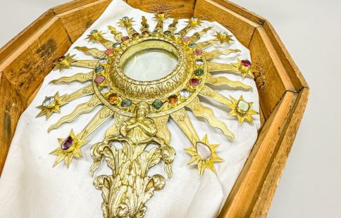L’ostensori fet per realçar la Sagrada Forma fou fabricada, en el cas de la d’Encamp, per adaptar-se al peu de la veracreu. Un estoig de fusta, pentagonal, amb un gravat al foc de l’escut d’Encamp i la inscripció ‘Sea obra per Encamp any 1755’ dona la cronologia de la peça. Sobre la peça que es lluirà diumenge durant la processó del Corpus Christi hi ha força docimentació. Per això es pot suposar, es té clar, vaja, que l’element de plata daurada el deuria fer l’argenter de Puigcerdà Francisco Reynes. No va ser l’única peça ‘encampadana’ que va treballar en or i plata.