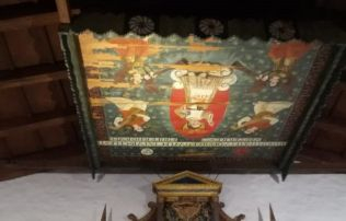 El baldaquí és una obra d'art i els seus autors uns cracs, però només en la confecció. Perquè en el muntatge van ser una mica sapastres sense tenir res a envejar als còmics de 'Pepe Gotera y Otilio, chapuzas a domicilio'. En el moment d’hissar el baldaquí, els artistes –l’escultor Miquel Rubiol i el pintor Çanou– es van trobar que la peça era massa gran per a les dimensions del retaule i del sostre de la petita capella. Doncs, cap problema: si no hi cap del dret, es posava del revés, i aquí pau i després glòria. Així que Crist va quedar al revès i de cap per avall pels segles dels segles.
