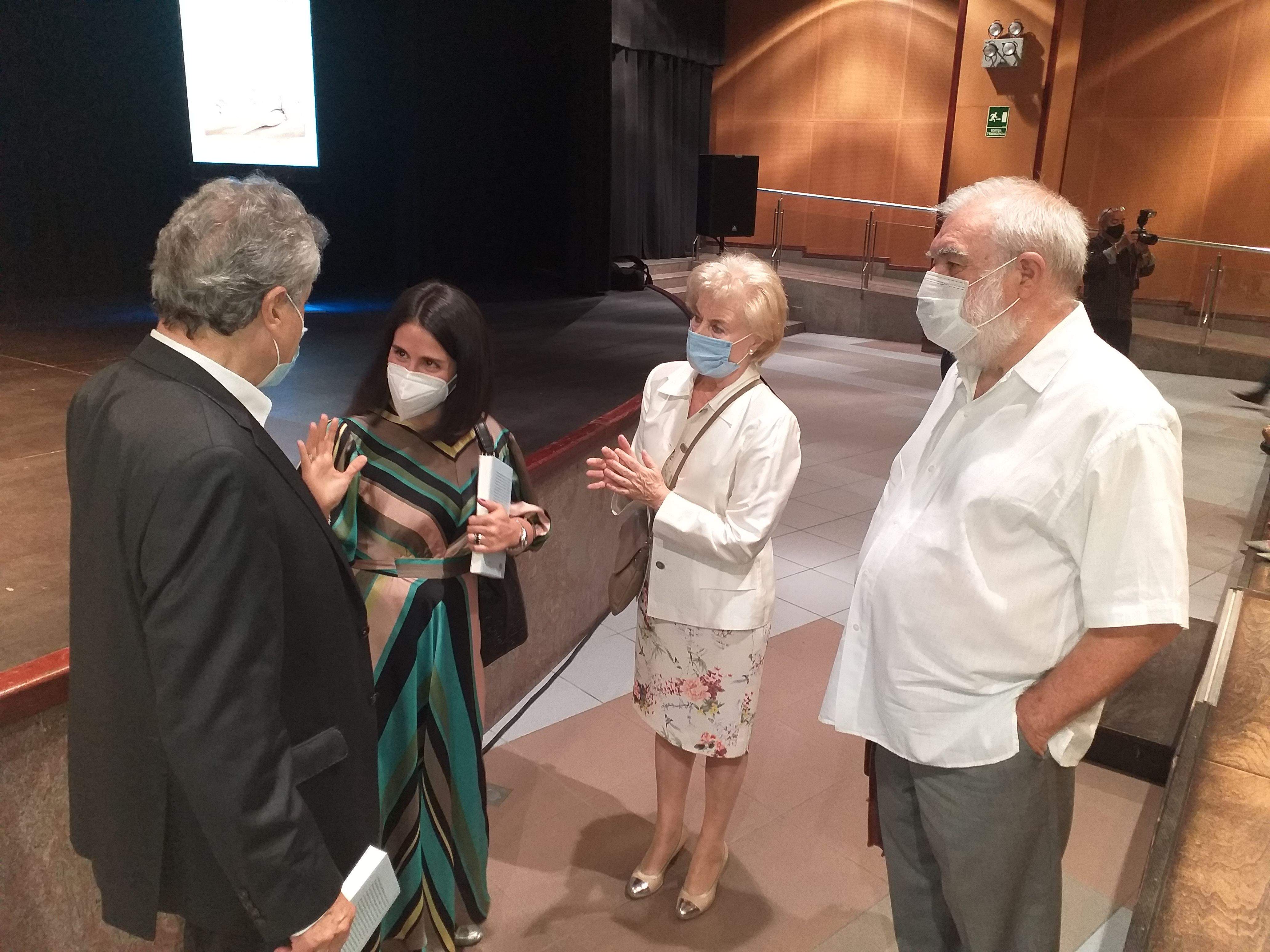 Casadevall xerra, abans de l'acte, amb Mas, Jordi Marquet i l'editor Josep Dallerés.