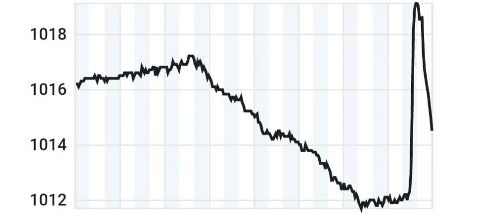 Una altra de les dades que avalen la teoria de l’esclafit és el sobtat augment de la pressió atmosfèrica, paràmetre meteorològic que mesura quant pesa l’aire que tenim sobre els nostres caps. Doncs bé, en només 15 minuts l’aire que teníem al damunt va augmentar radicalment la pressió que feia sobre nosaltres passant de 1012,4 hPa a 1018,7 hPa. Un canvi de més de 6 hPa que pels que han vist alguna vegada el temps a la tele, són sis línies isòbares d’aquelles que veiem als mapes on apareixen els anticiclons i les depressions. Sense cap mena de dubte una barbaritat.