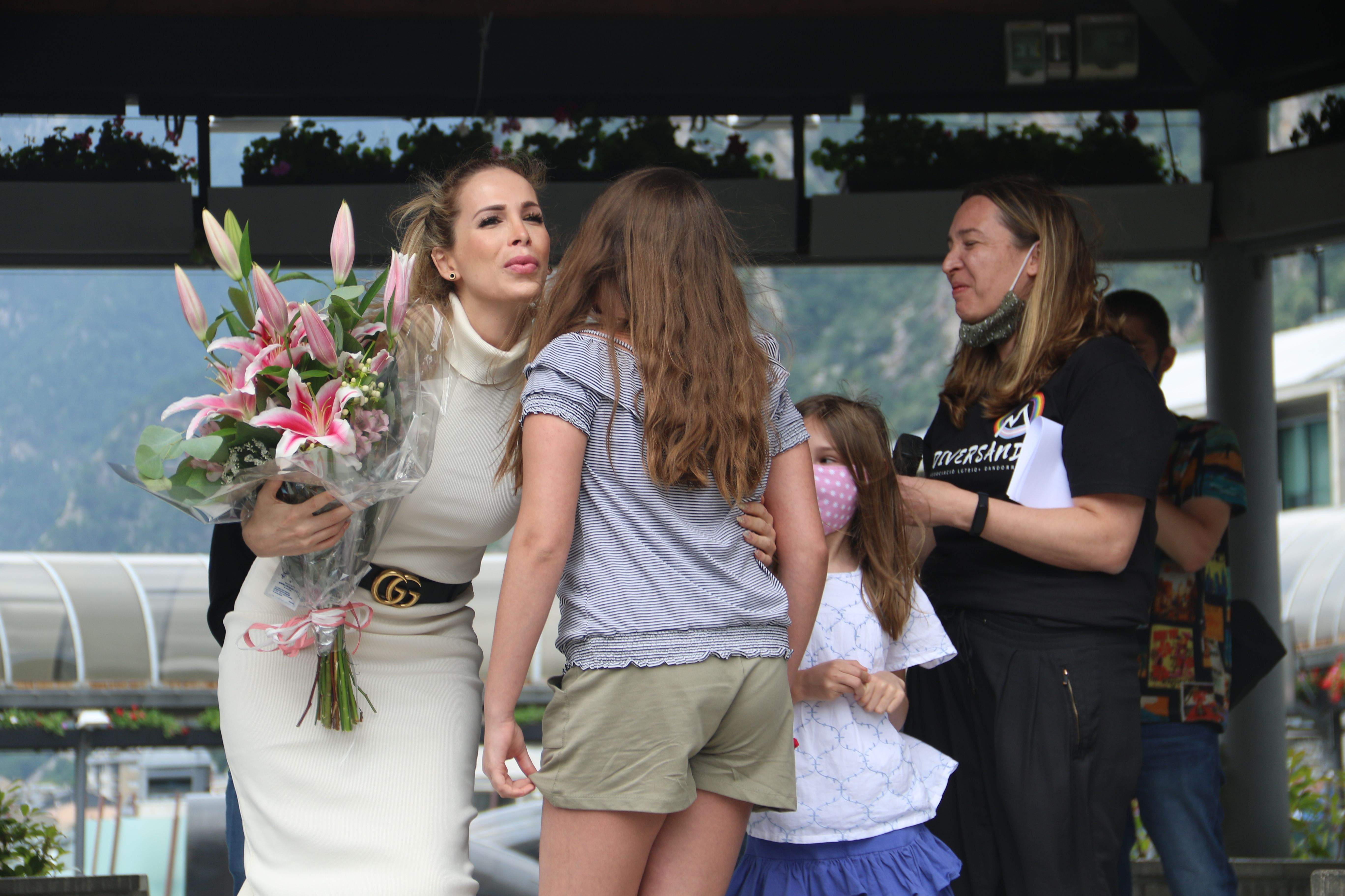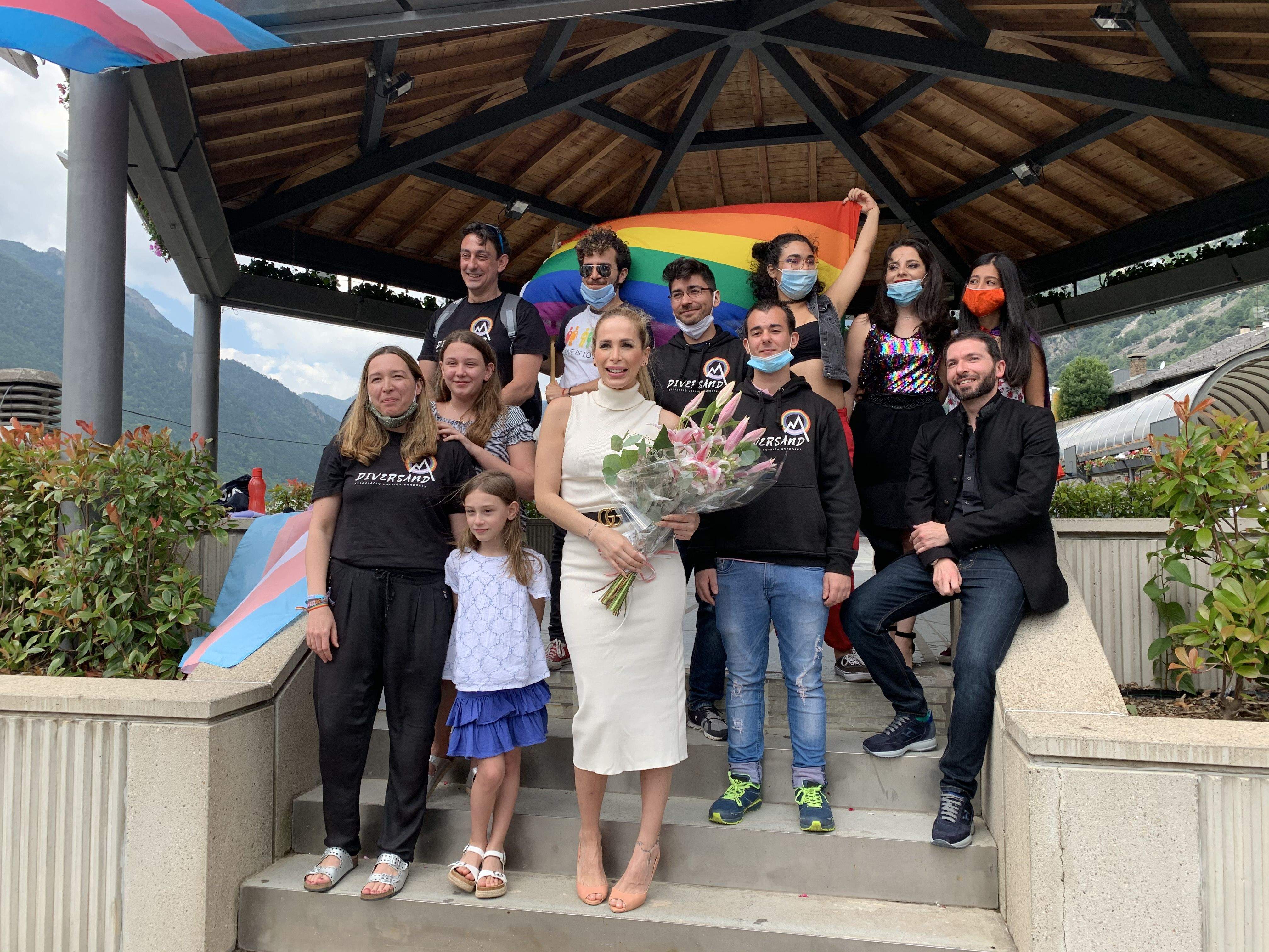 Miss Trans Espanya 2019 ha estat l’autèntica protagonista de la vetllada a la Plaça de Poble. Michelle Relayze ha exercit de padrina d’un acte curt però intens. A Diversant, el col·lectiu ja reconegut com a associació que promou especialment l’activitat i els drets LGBTIQ+ al país li hauria agradat fer més festa. Però les restriccions producte del coronavirus són les que són, per molt que els petons -sense mascareta- i les abraçades hagin estat a l’ordre del dia durant l’acte. Relayze ha aixecat tanta expectació com posats per a fotografies ha hagut de fer.