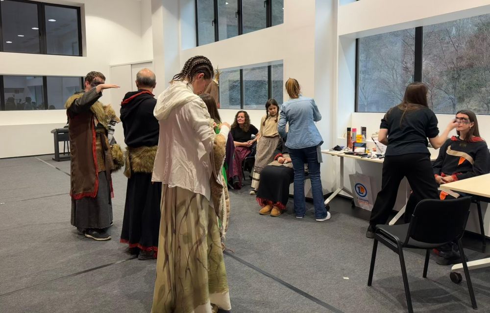 Abans de començar l’assaig els actors es preparen en diverses sales. Es posen el vestuari corresponent, s’ajuden a maquillar-se i esperen l’hora de l’assaig de l’obra entre converses i rialles. La Canolich Giribet, una noia de vint anys que des de petita que actua a 'Els Pastorets' i que actualment fa de Farigola, explica que fan molta germanor: “Som un grup molt bonic, que ens portem molt bé tots entre tots i ens ajudem”.