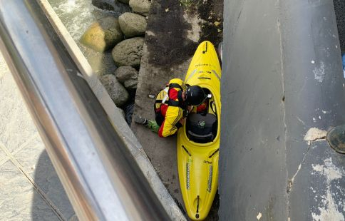 Sense manies i aprofitant la força i l’embranzida del fort cabal que omple de vigorositat el riu aquests darrers dies, dos homes ben preparats per a l’ocasió han fet els passos necessaris per descendir fins a l’aigua amb sengles embarcacions des del carrer Constitució d’Escaldes, ben a prop del comú de la parròquia.