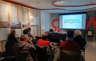 Lacuesta ha fet un ampli repàs a l’obra de Martinell, on tenen un pes molt important les cooperatives vinícoles. Però la casualitat també va voler que un cop graduat el 1916, el seu primer encàrrec li arribés del Principat: la coneguda com a casa dels Russos o Casa Popoff, com l’anomenava ell. De fet, va singular torre de pedra va ser també la primera obra d’autor d’un arquitecte llicenciat feta al país. “Un xalet que s’integra en el paisatges, no com el que veig ara”, ha apuntat Lacuesta sense por a ofendre.