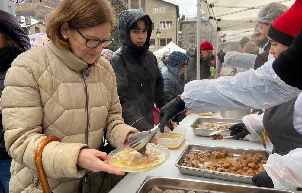 La Massana treballa amb set olles -una per cada quart de la parròquia- i preveu habitualment entre 2.300 i 2.500 racions, que aquest dissabte festiu han arribat fins a les 2.800. D’aquestes, unes 300 corresponen a opcions vegetarianes i per a persones amb intoleràncies, elaborades de manera separada per evitar contaminacions. Una aposta clara per una escudella “d’alta qualitat, lleugera i digerible”, gràcies al desgreixatge previ dels brous.
