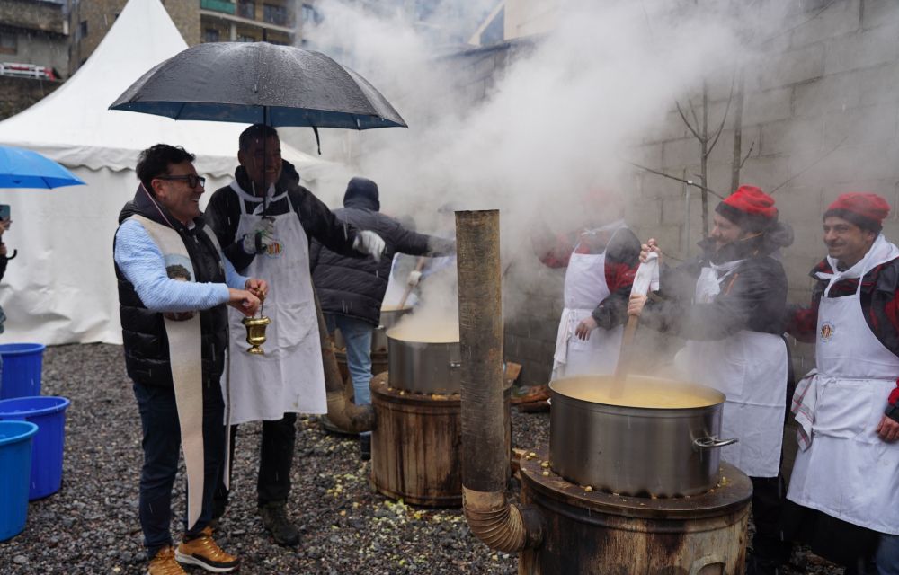 Des de dos quarts de sis del matí els escudellaries de la germandat han començat a preparar aquestes 2.500 racions perquè Sant Julià pogués gaudir d’aquesta Diada de Sant Sebastià amb la mateixa il·lusió de sempre i tenint molt clar que “tant si plou, com si neva, no deixarem caure aquesta tradició”. I el mateix ha pensat el poble, que han començat a fer diferents cues al voltant de la Plaça de la Germandat i per l’avinguda Verge de Canòlich, que han començat sota la pluja i han acabat amb una nevada intensa a Sant Julià.