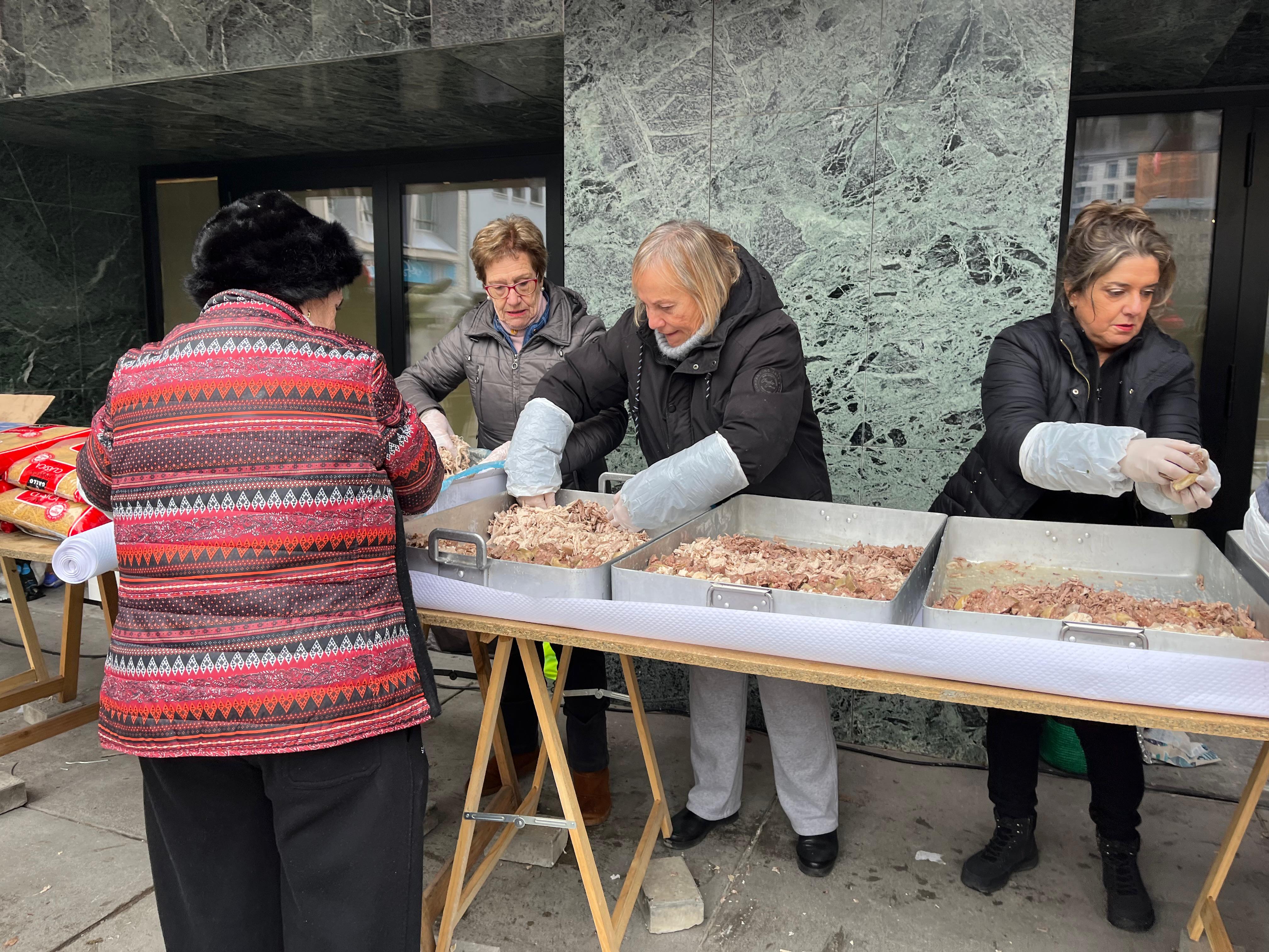 Les voluntàries preparant la carn.