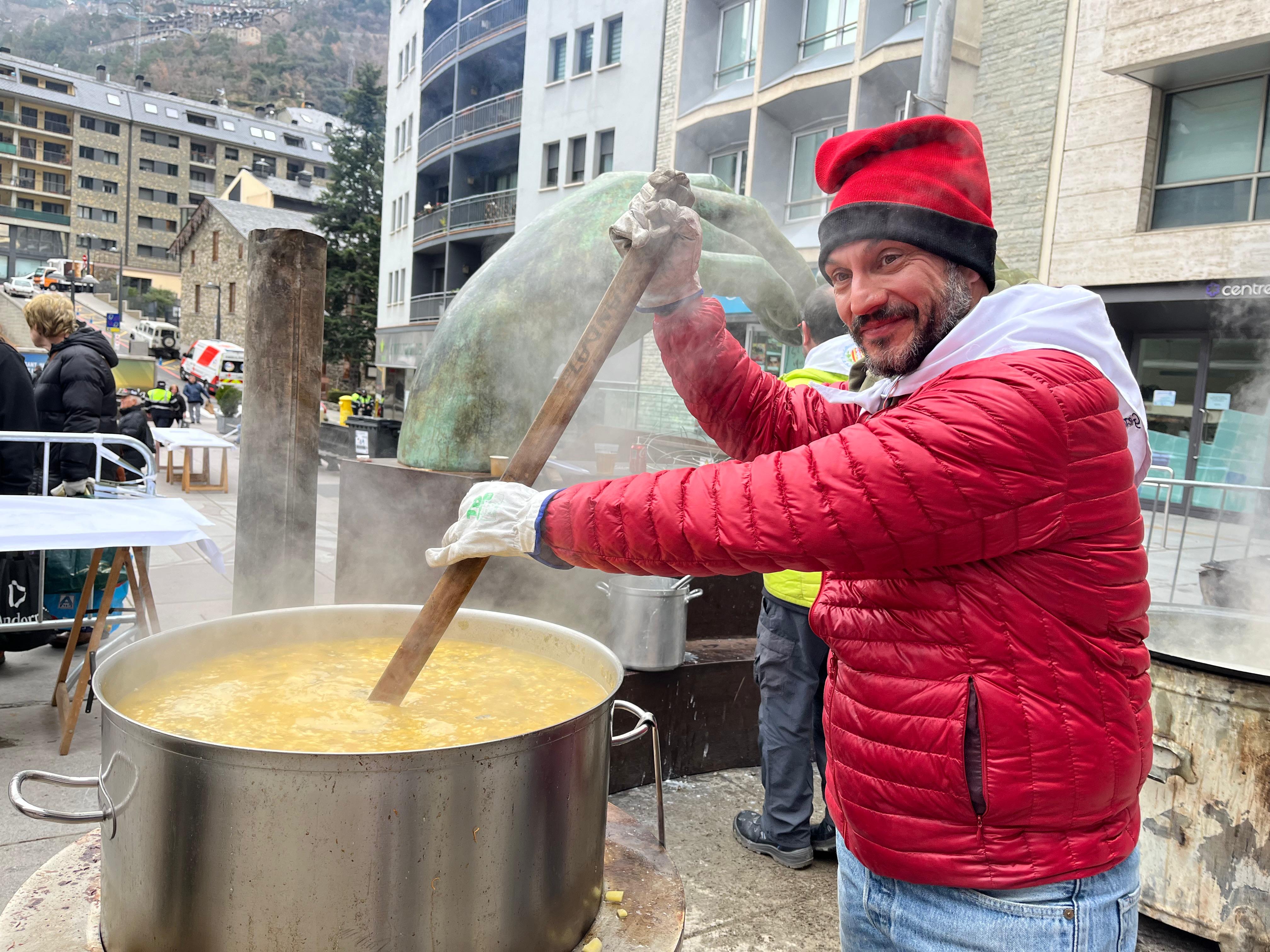 El conseller general, Pol Bartolomé, fent l'escudella.
