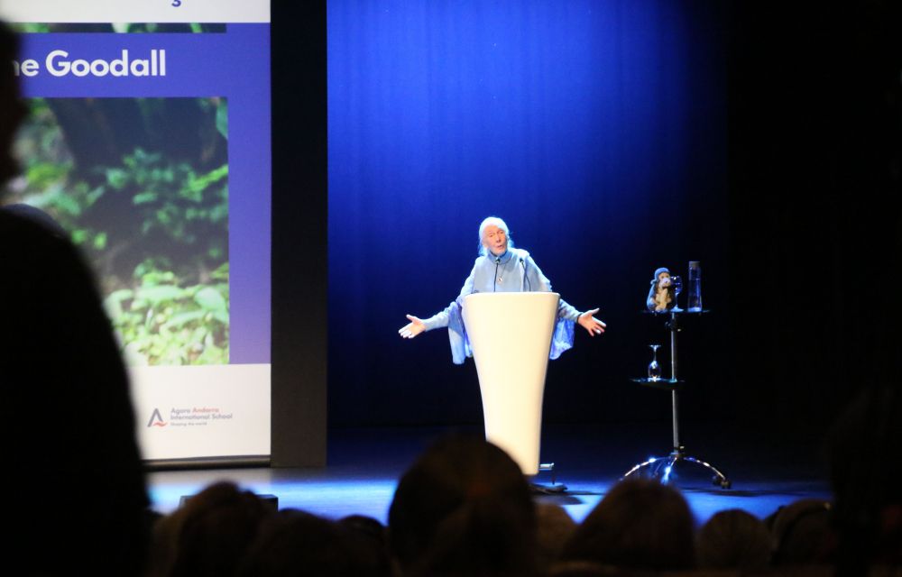 I va fer molt gràcies a la confiança que li va fer la seva mare. La primatòloga i activista ambiental Jane Goodall ha completat aquesta tarda la seva estada al Principat. No havia estat mai a Andorra. I ha traslladat al públic en general el mateix que aquest dilluns ja va exposar a mig miler d’estudiants a l’Agora School. De fet, si Goodall ha visitat Andorra és ‘per culpa’ del centre educatiu de l’Aldosa. O més concretament, del fet que la presidenta de l’Institut Jane Goodall a Espanya, Laura Marí, visqui des de fa un temps al Principat. I tingui escolaritzats els seus fills a l’Agora.