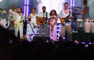 El moment de la seva aparició a l'escenari de la plaça Guillemó.