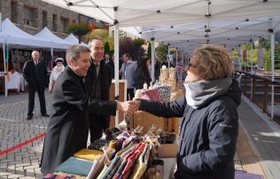 El Copríncep ha parlat amb gairebé tots els paradistes -una cinquantena-. Alguns d’ells li han ofert tastar el menjar que oferien. Una de les coses que sí que ha agafat ha estat una paperina de castanyes de mans del conseller Kinchella. Les ha compartit amb la resta de la comitiva. No anaven pas malament tenint en compte que el sol encara no arribava a l’espai i feia una fresca important.