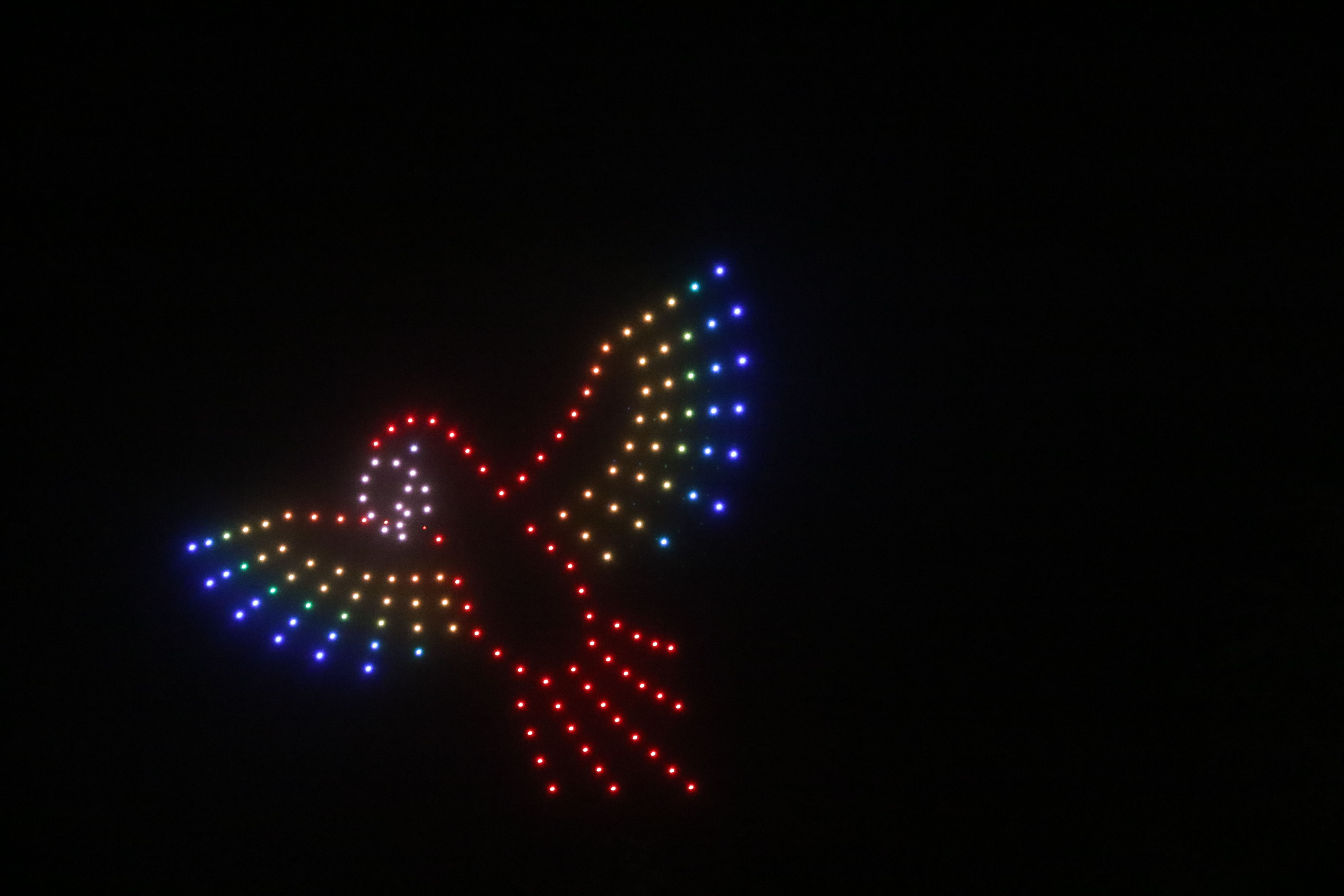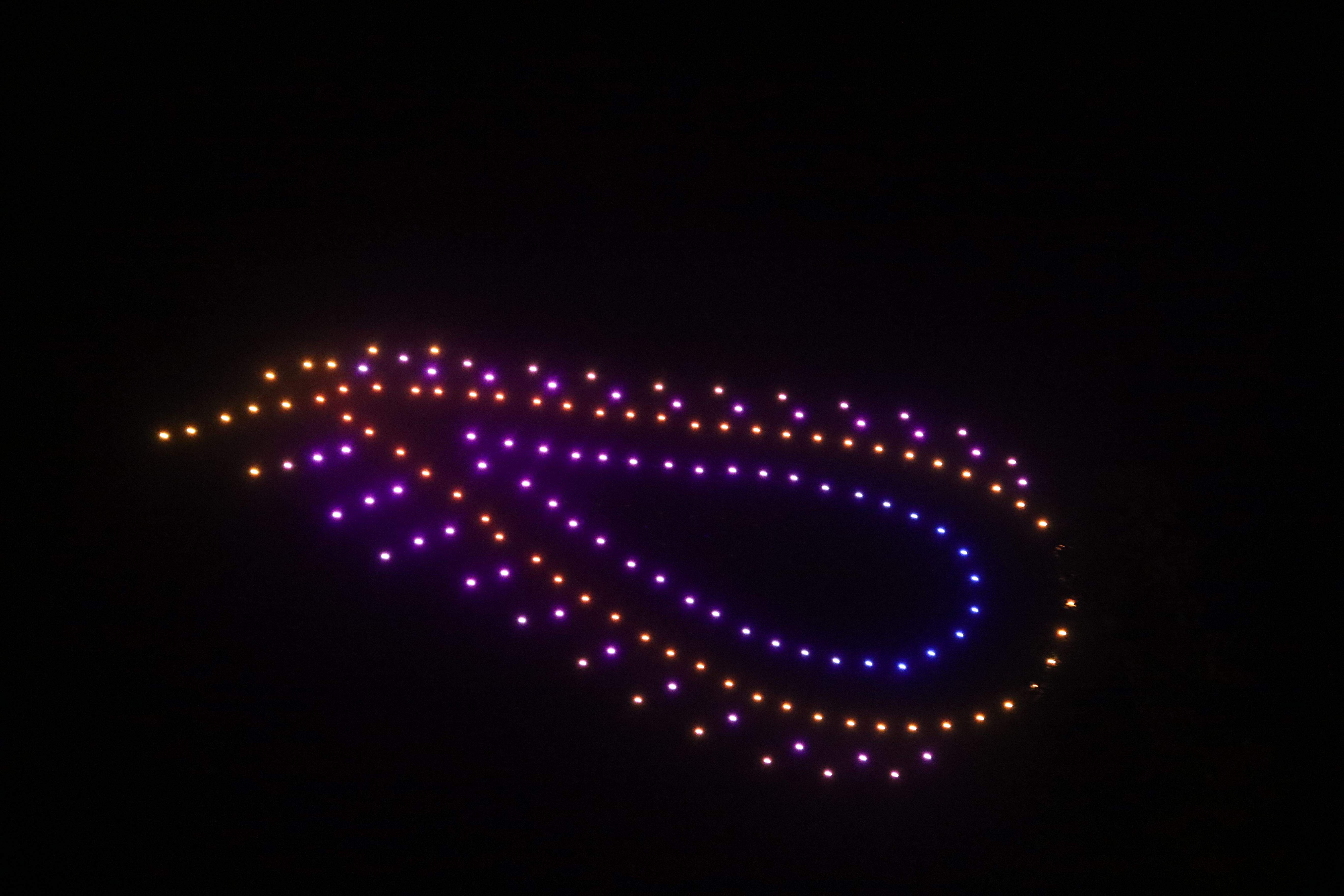 Mirant l'espectacle de drons 'per sobre' de l'antic hotel Rosaleda.