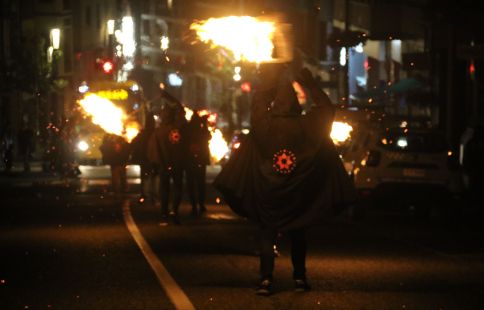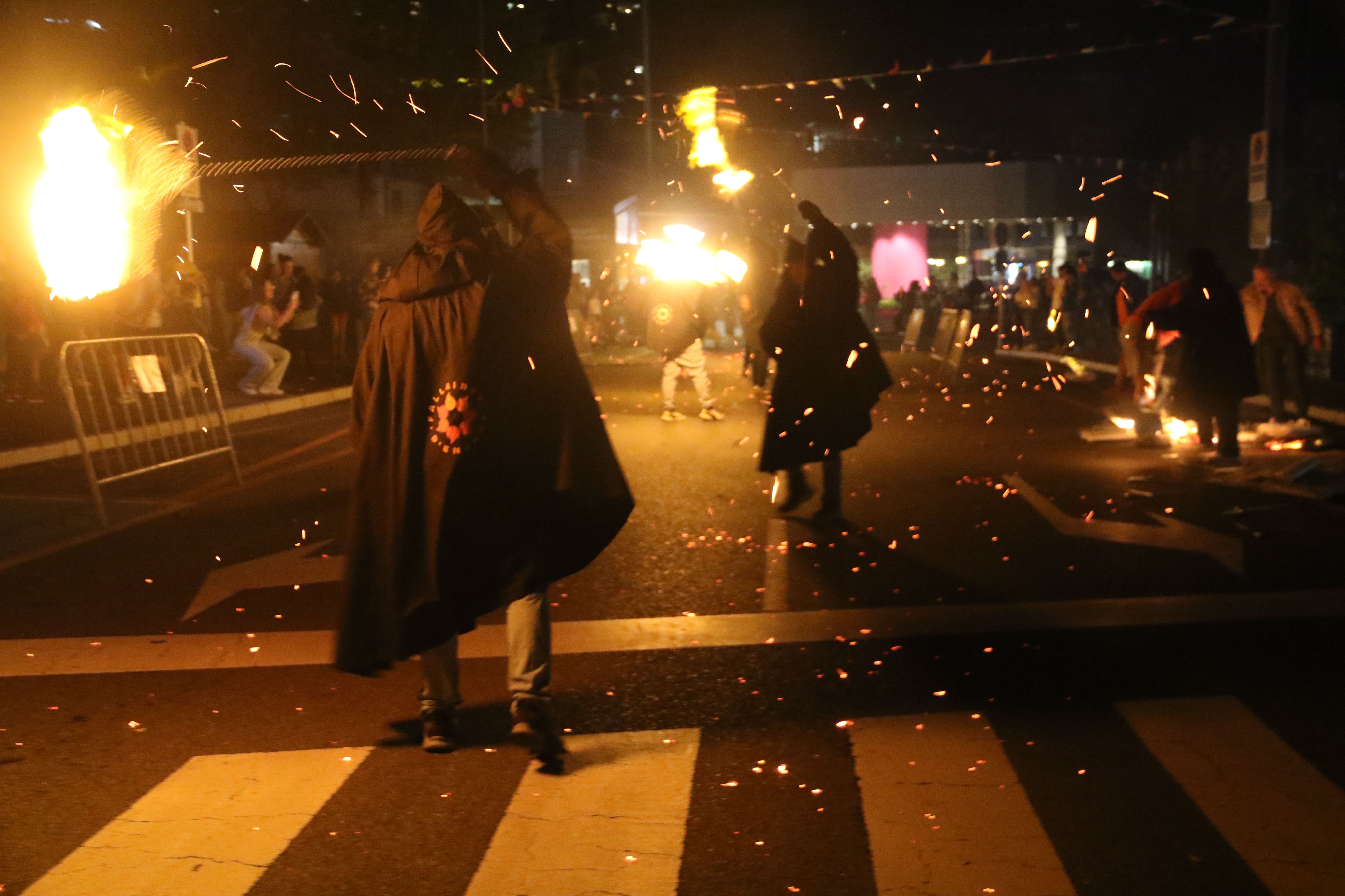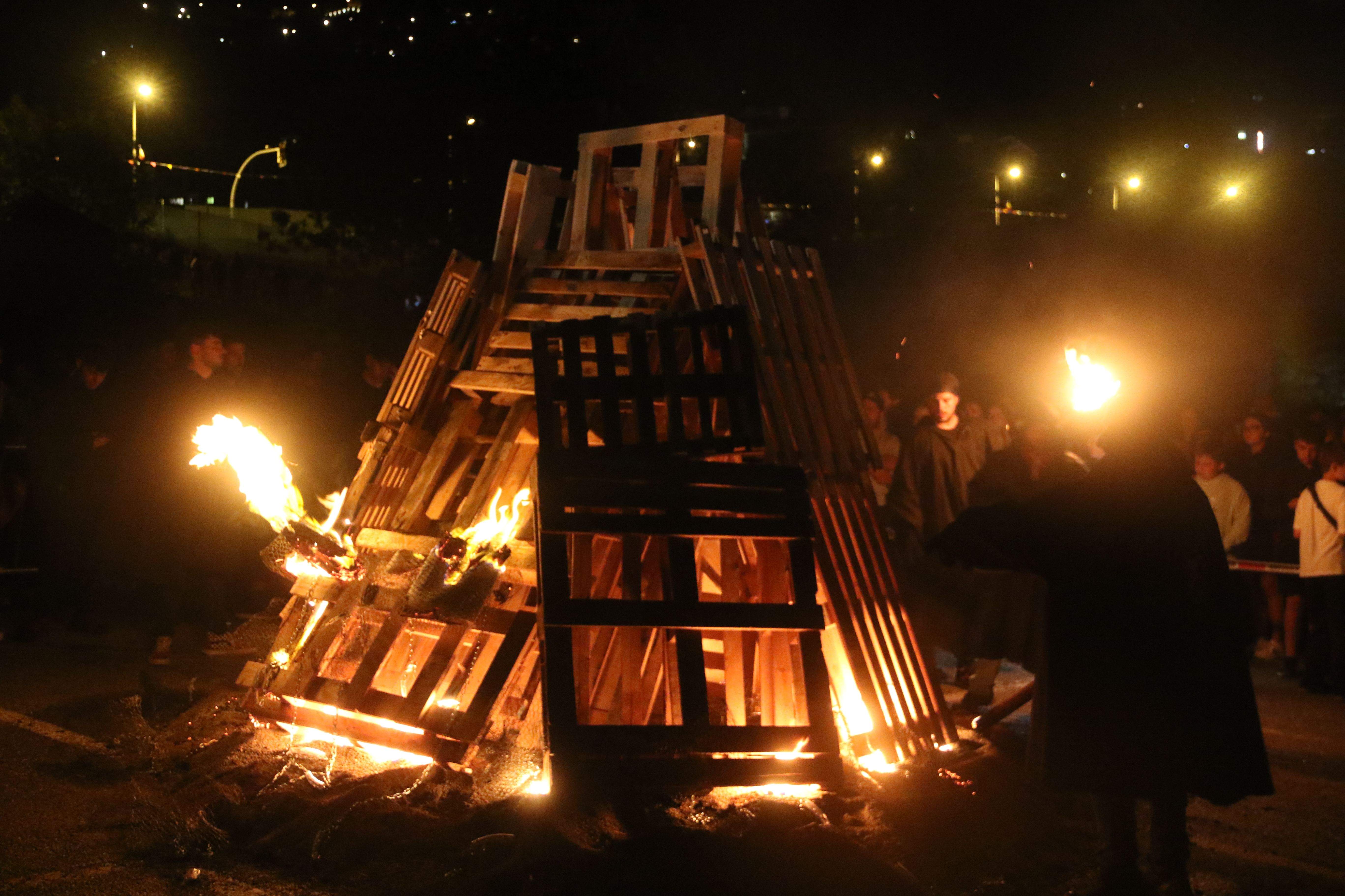 De públic, siguem clars, n’hi havia més per observar l’encesa de la foguera -missió última dels propis fallaires- que no pas per veure la roda, el passi, el petit recorregut. Ep, que de tot hi ha hagut. Fins i tot dels tafaners que no en tenen ni idea. “Però si van encaputxats”, deia una. “És el ritual”, responia l’amiga. I no eren pas frases d’un excés de calor. D’una calorada. Que els xàfecs dels darrers dies han fet abaixar la temperatura. I fins i tot han portat una dosi d’humitat en l’ambient que segurament s’ha deixat notar en l’encesa.