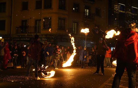 Però el gran moment de la jornada ha arribat una vegada s’ha fet fosc, i la plaça s’ha convertit en l’escenari d’un espectacle de foc inoblidable. Els assistents estaven expectants, perquè després d’hores esperant tenien ganes de veure la “giravolta al foc”, i amb només enceses les llums de l’arbre de Nadal de la plaça, els fallaries de la llum s’han preparat. “Avui tenim l’oportunitat de veure una imatge per la història”, ha afirmat el fallaire major Ferran Mata, durant el seu discurs, referint-se a aquesta impressionant imatge de germanor i futur.