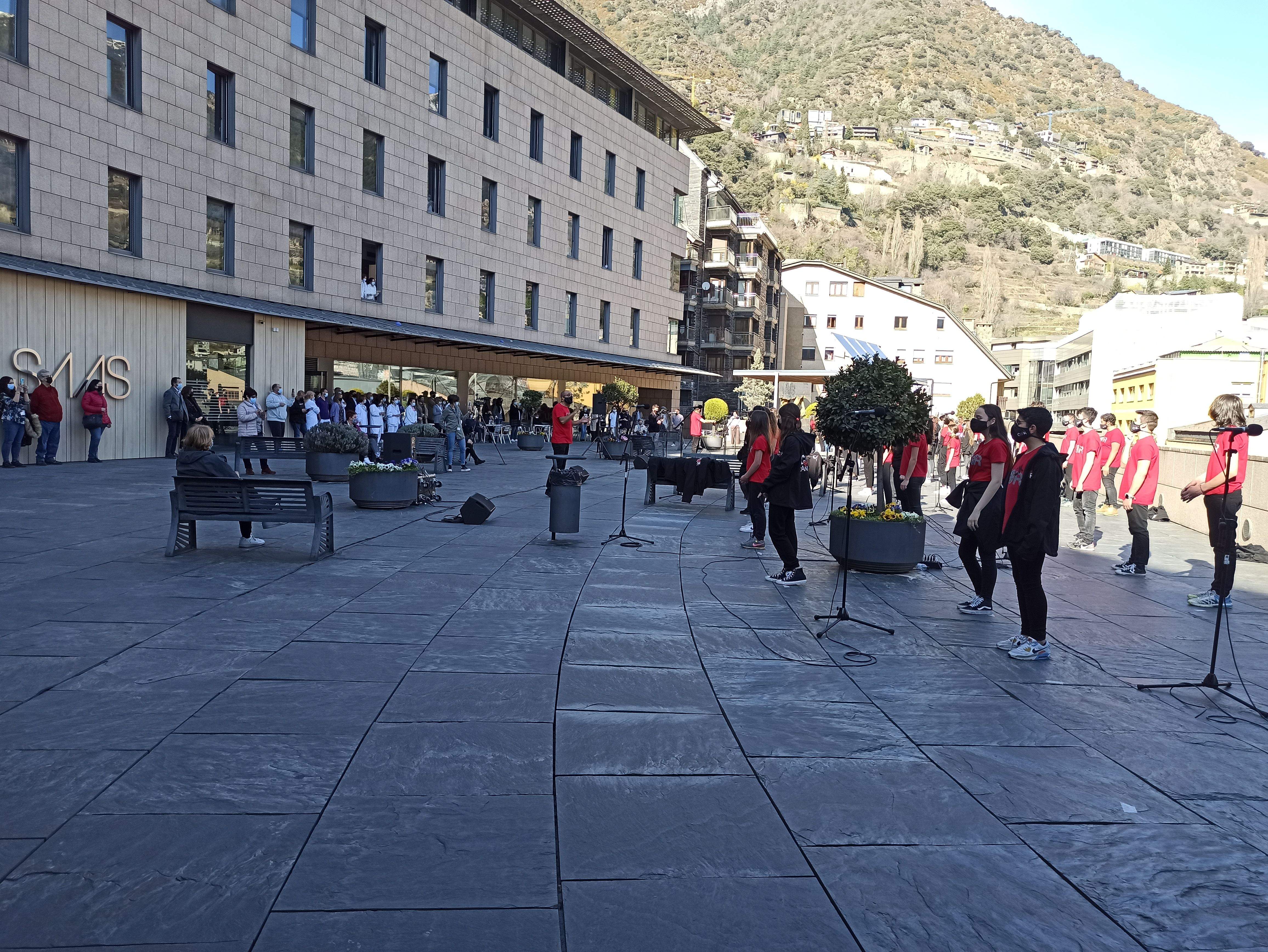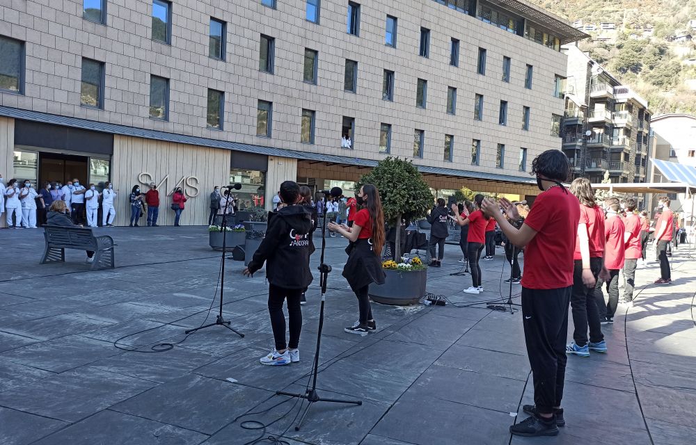 L’homenatge musical als sanitaris ha finalitzat amb l’entrega simbòlica d’un ram de flors de paper, realitzat pels alumnes de l’Escola andorrana. “Ens tornarem a veure prompte en unes millors condicions. Esperem que quedi poc d’aquesta pandèmia”, ha exposat el director del Cor de Rock. Així s’ha donat el toc final a una actuació curta, però molt emotiva.