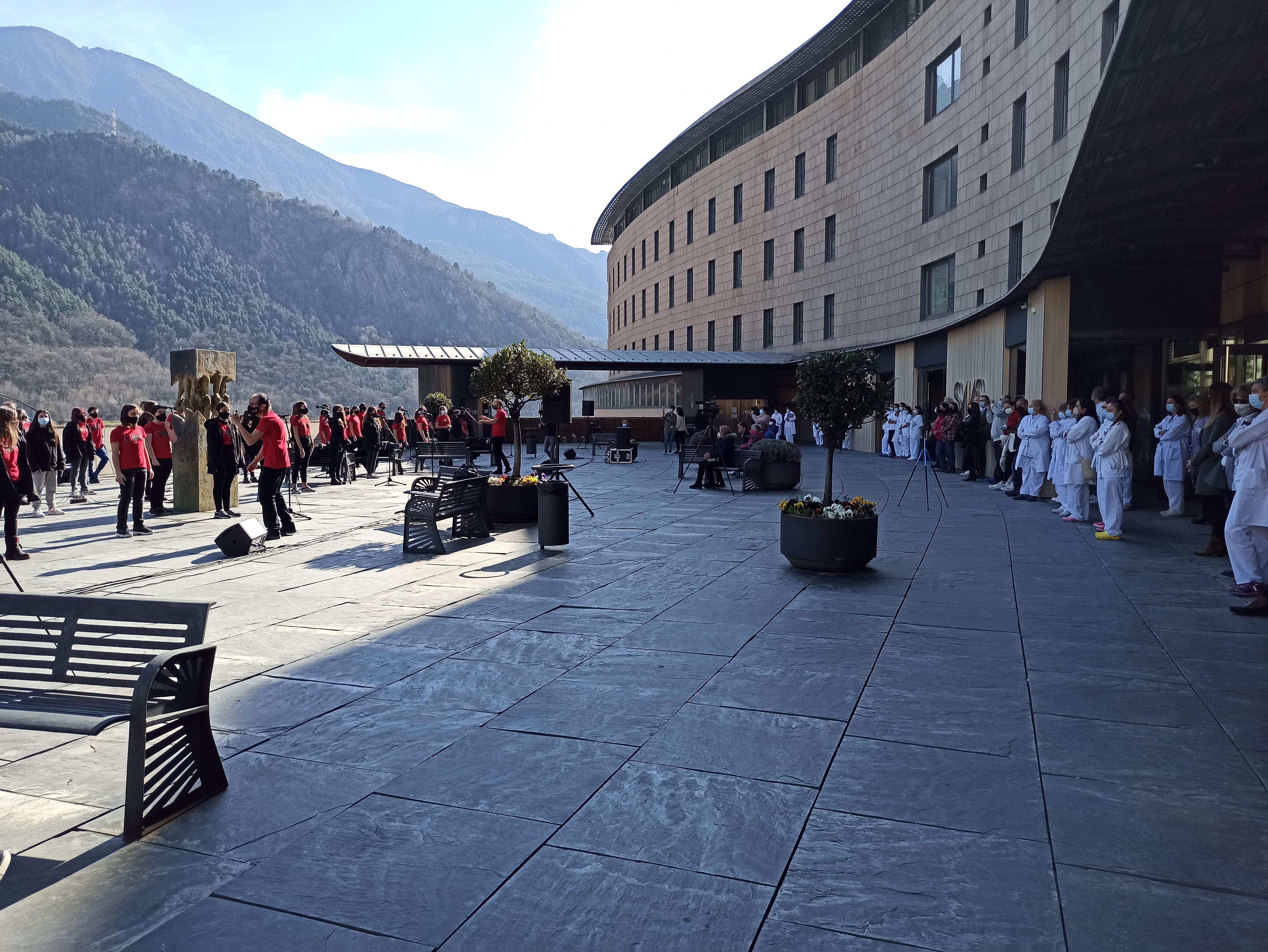 Els sanitaris han sortit de l'hospital per veure el concert del cor.