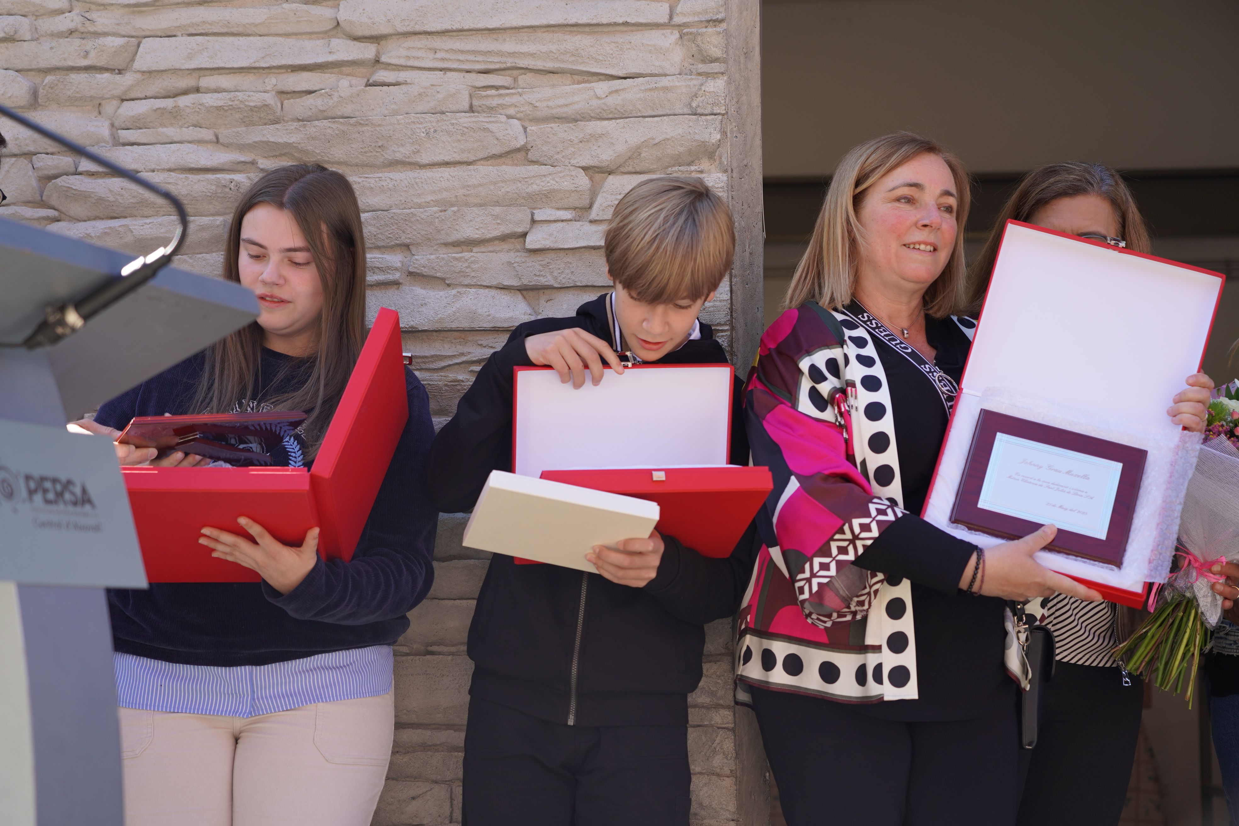 La vídua i els fills de Grau amb algunes de les plaques que se'ls han lliurat.