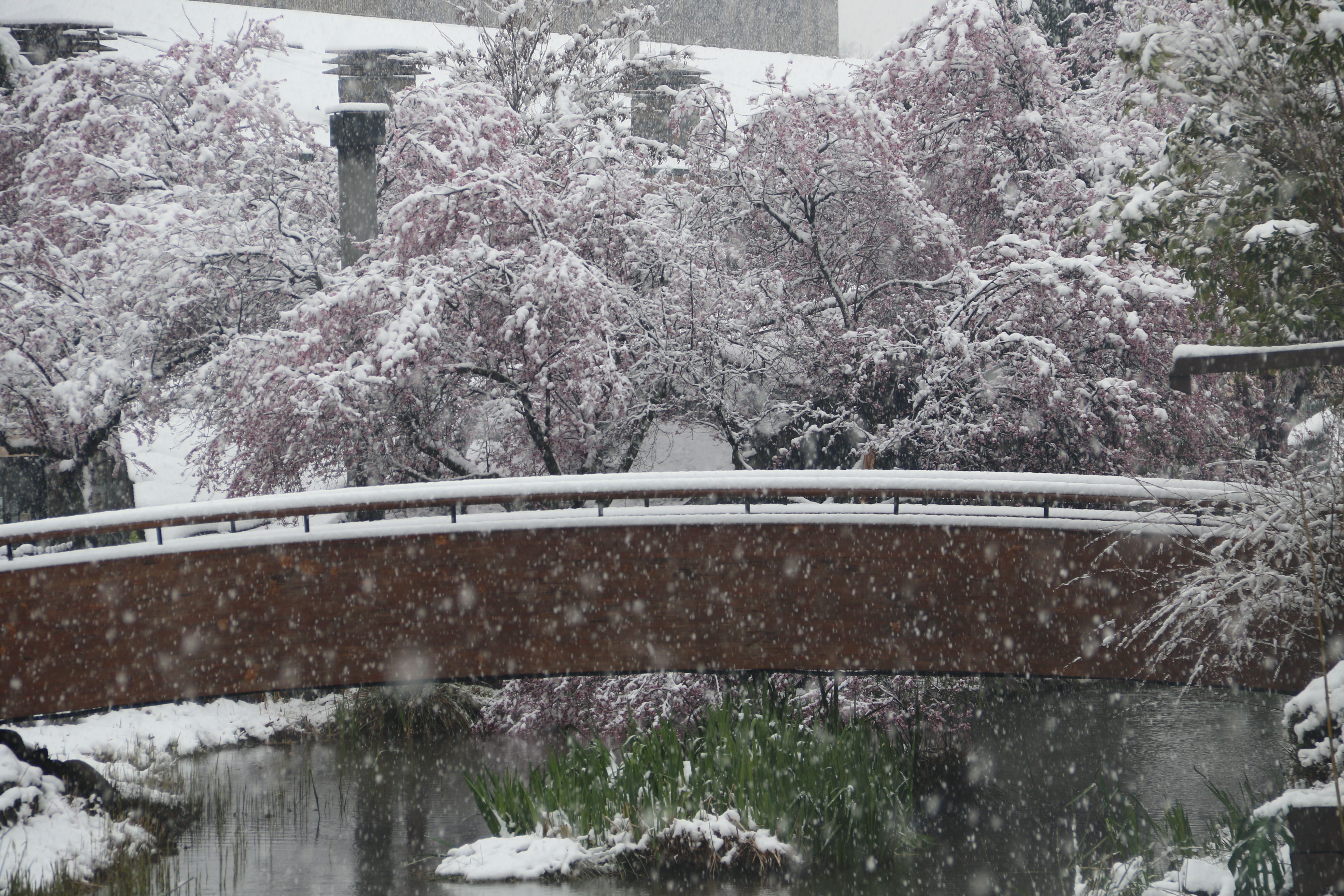 Una imatge bucòlica de l'estany del Parc Central, nevat.